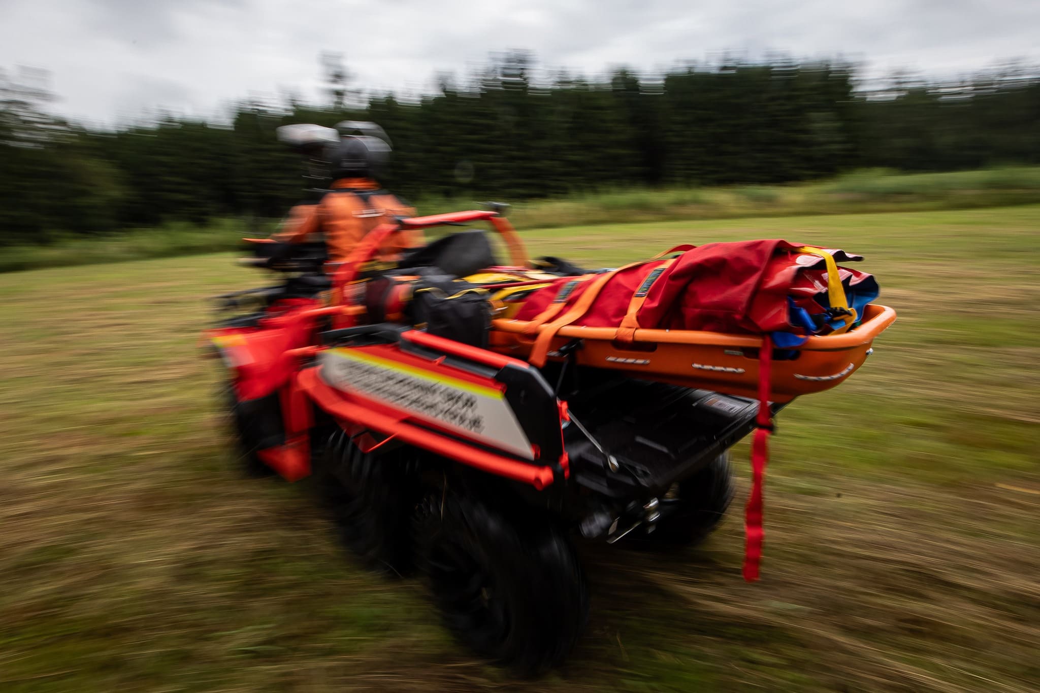 Součástí výcviku bylo i testování nové šestikolové čtyřkolky pro zásahy v těžko přístupných oblastech. Právě tento typ techniky se ukázal jako efektivní nástroj pro rychlý transport zraněného v členitém terénu.
