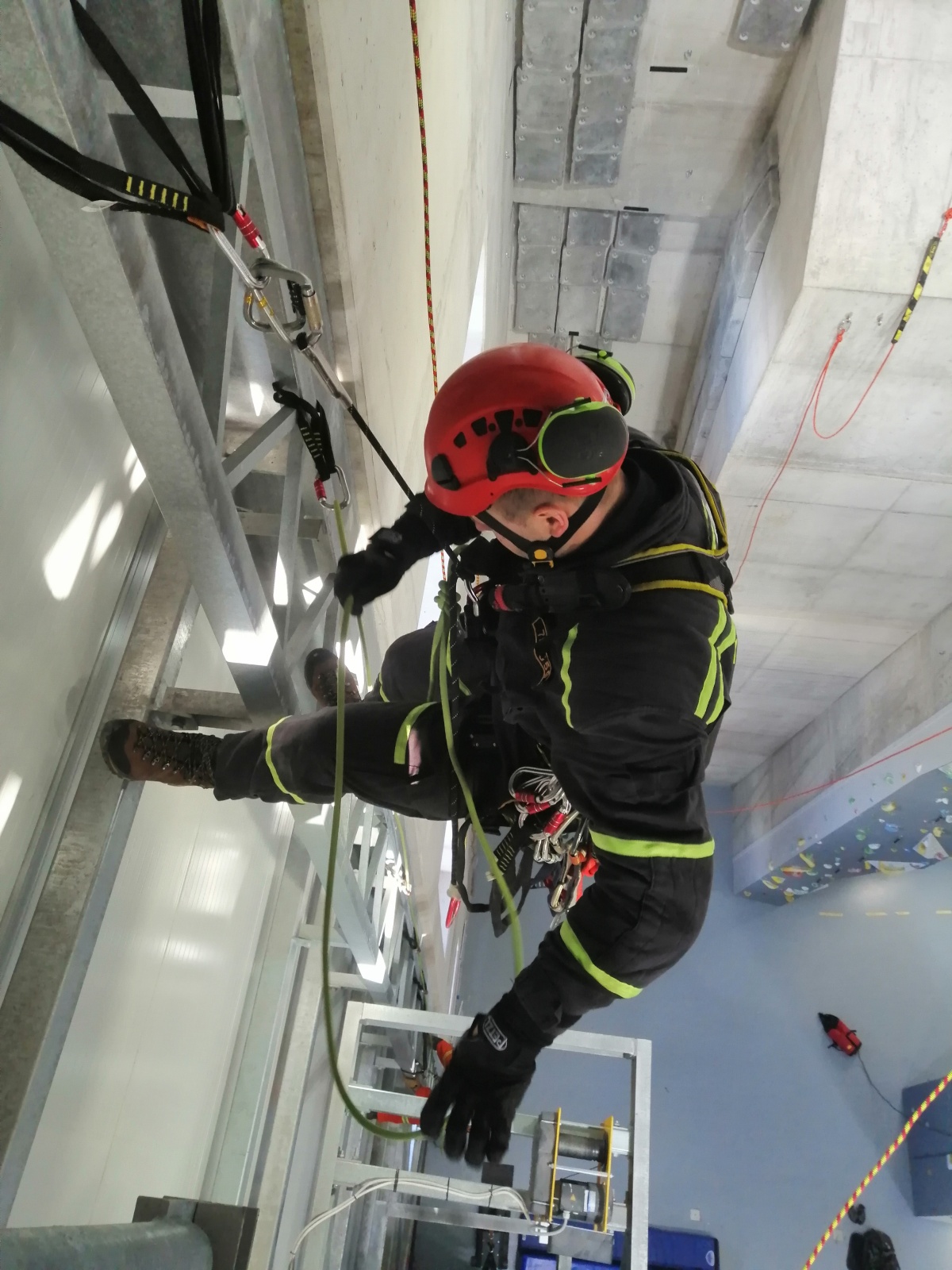 Budova polygonu je výjimečnou stavbou, ve které mohou hasiči trénovat různé druhy práce ve výšce a nad volnou hloubkou pomocí lanové techniky. Odborná příprava byla zaměřena na nácvik různých technik, které mohou hasiči během výkonu svého povolání využít. Nespornou výhodou celého prostoru je výška budovy, kdy veškeré tréninky mohly probíhat v bezpečném prostředí, které však věrně kopírovalo možnou reálnou situaci.