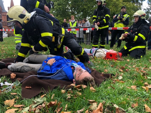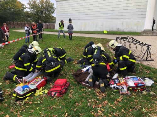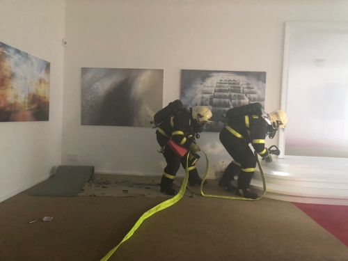 V odpolední praktické části předvedlo šest jednotek profesionálních (HZS MSK) a dobrovolných hasičů účastníkům konference ukázku hašení požáru ve druhém nadzemním podlaží bílé části zámku v Hradci nad Moravicí, spojenou se záchranou dvou osob. Zásah hasičů byl komentován.