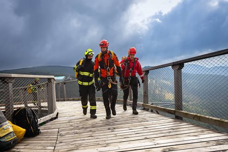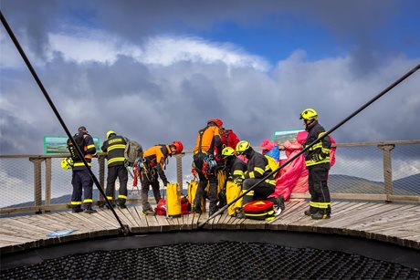 Scénář cvičení simuloval nehodu dvou paraglidistů. První z nich zůstal zachycen v konstrukci Stezky v oblacích s podezřením na poranění páteře. Na místo byla povolána lezecká skupina HZS Pardubického kraje, která okamžitě zahájila zásah.