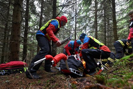 Koordinovaná záchrana paraglidistů v náročném horském terénu