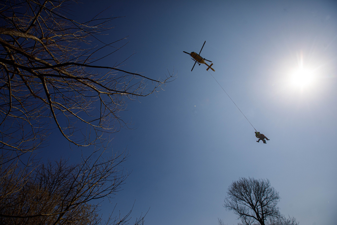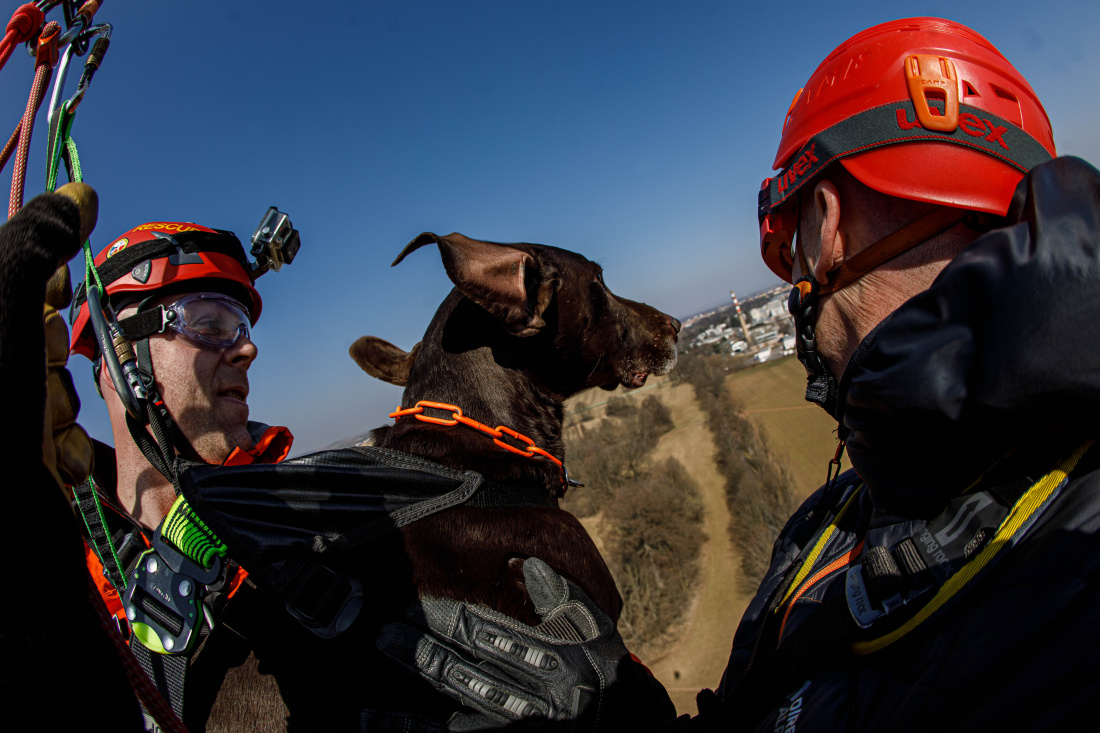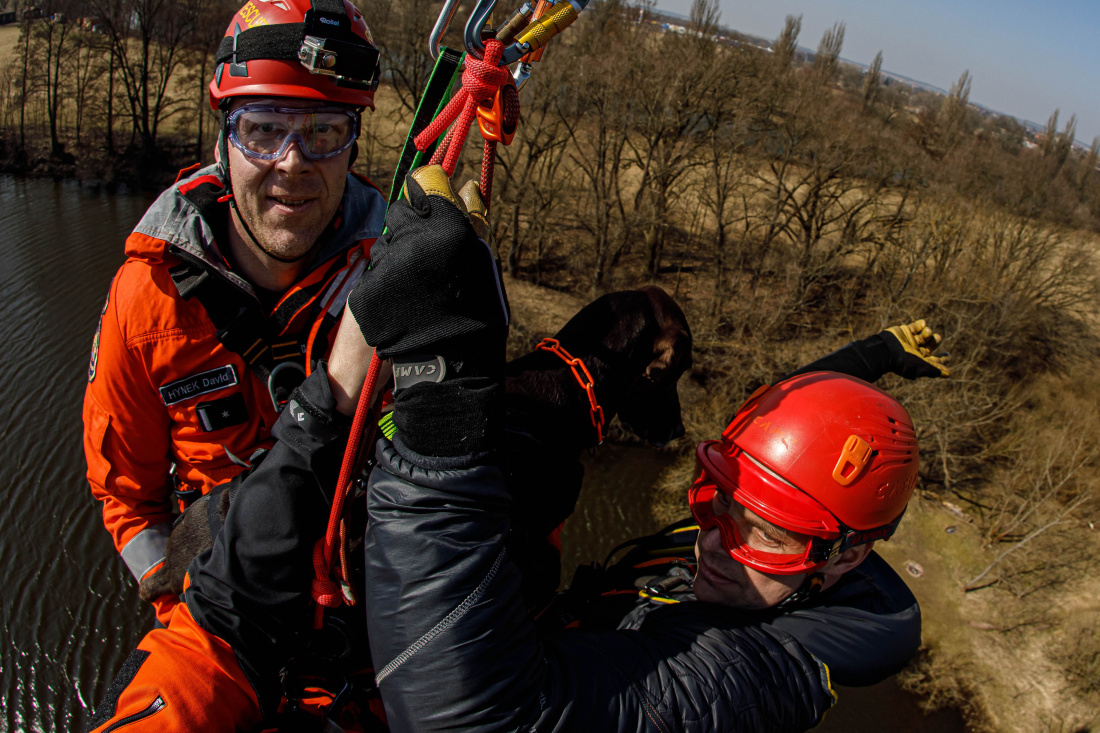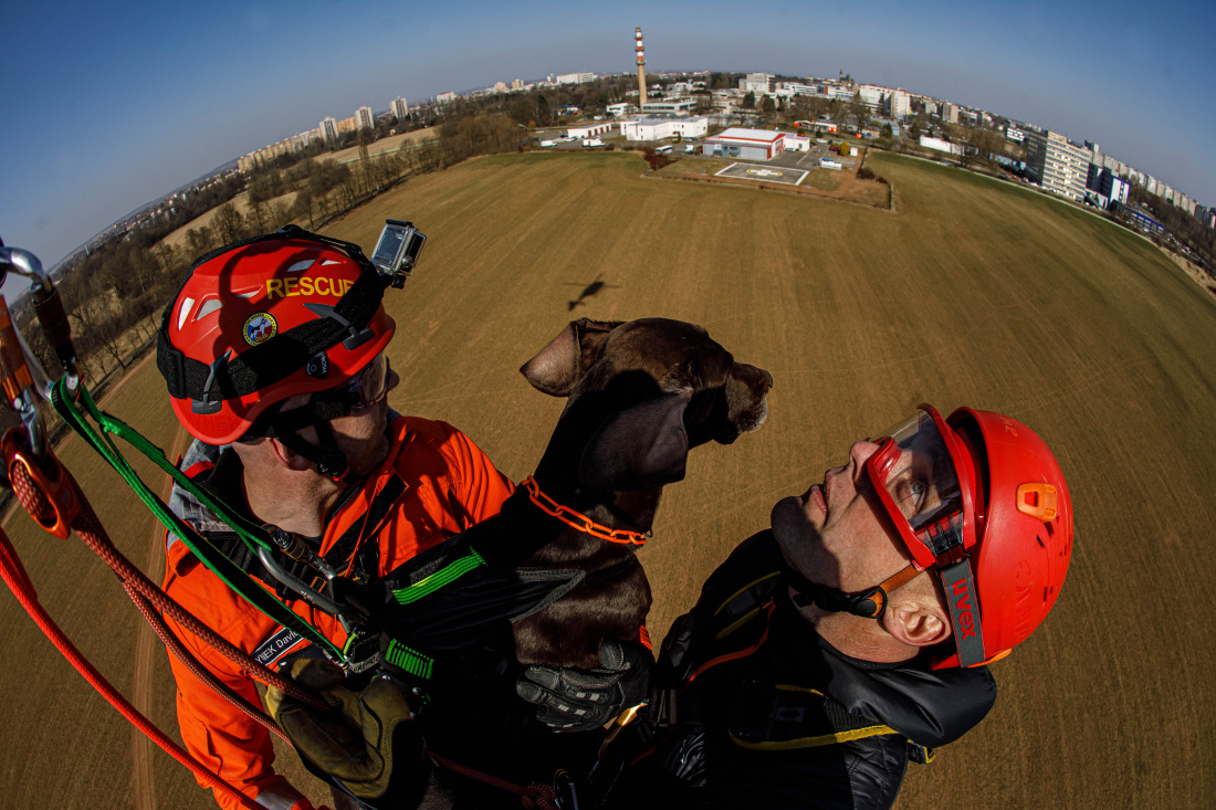 Letečtí záchranáři cvičili transport záchranářského psa v podvěsu