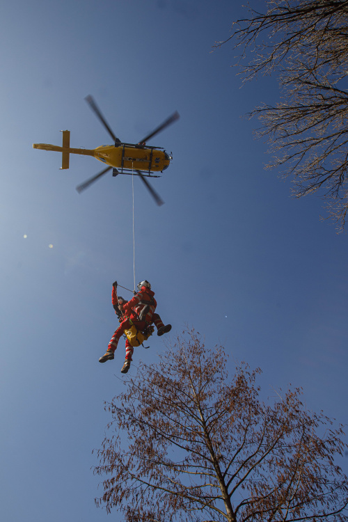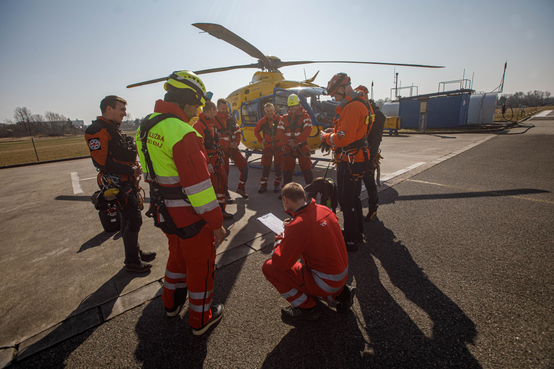 Takové zásahy sice nejsou na denním pořádku, o to jsou ale pro všechny záchranáře náročnější a vyžadují intenzivní společnou přípravu všech zúčastněných složek. Konají se tak pravidelné výcviky se zaměřením na záchranu osob v podvěsu pod vrtulníkem, čímž se tyto speciální letecké činnosti udržují a zdokonalují. Přípravy se účastní spolu s lékaři a záchranáři ZZS KHK i hasičští letečtí záchranáři z centrální stanice Hradec Králové, kteří doplňují posádku při určitých typech zásahů na vyžádání. Tentokrát si hasiči vyzkoušeli, jaké to je v případě, když je nutné transportovat kynologa společně se psem do míst, kde je zapotřebí.