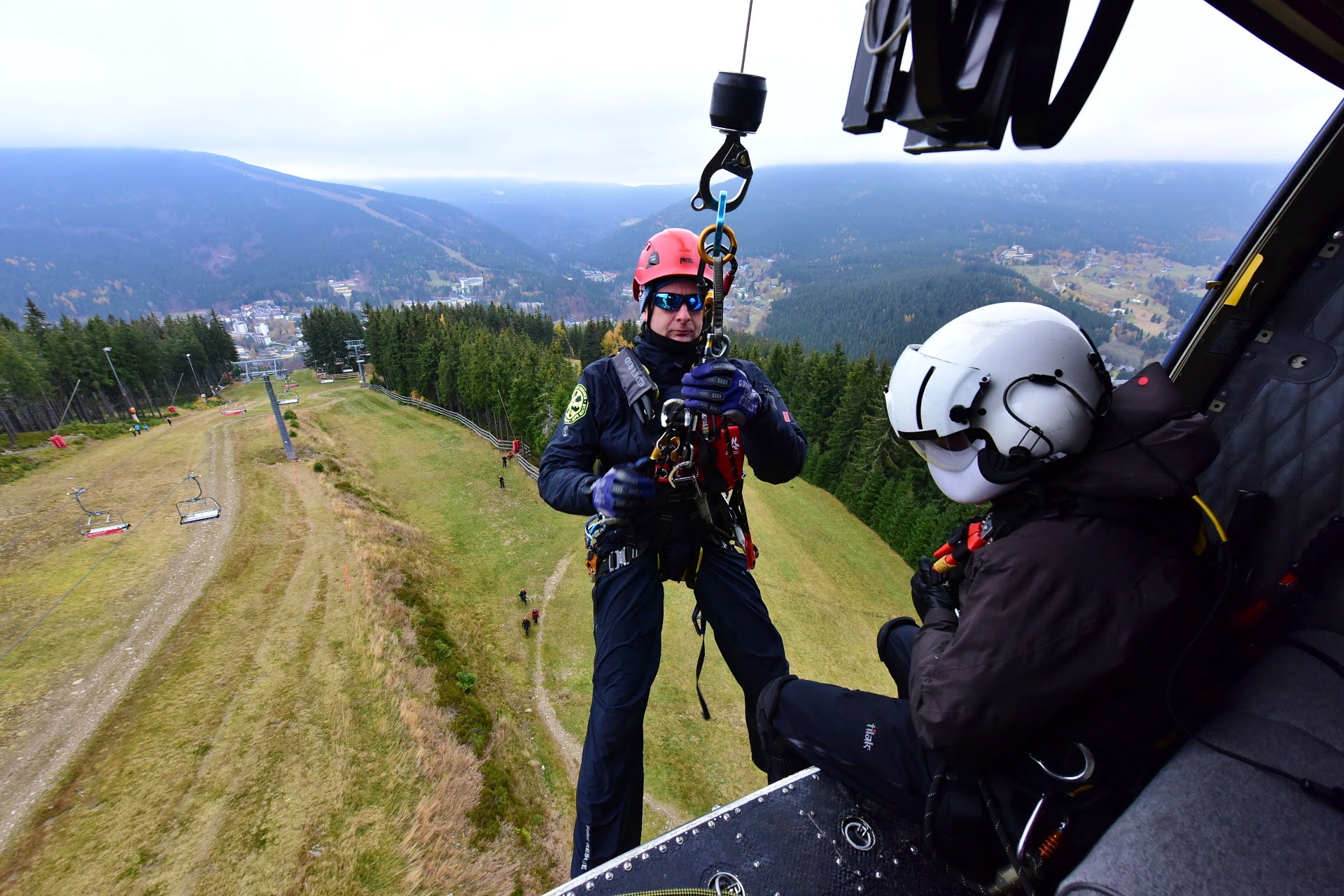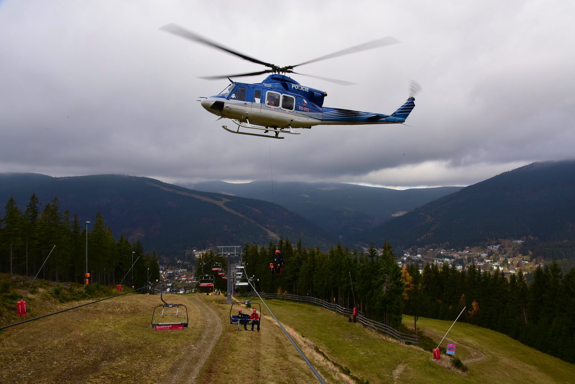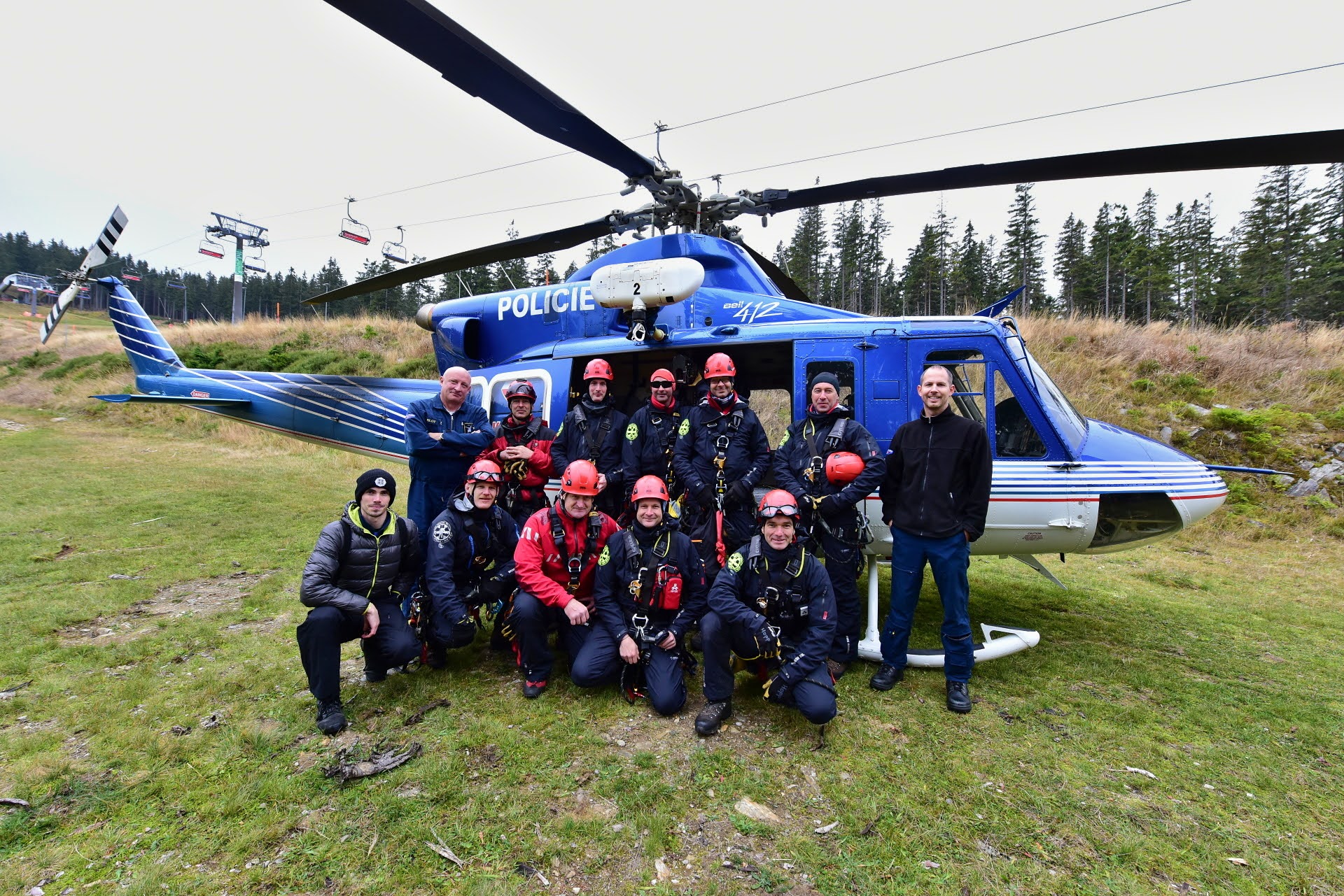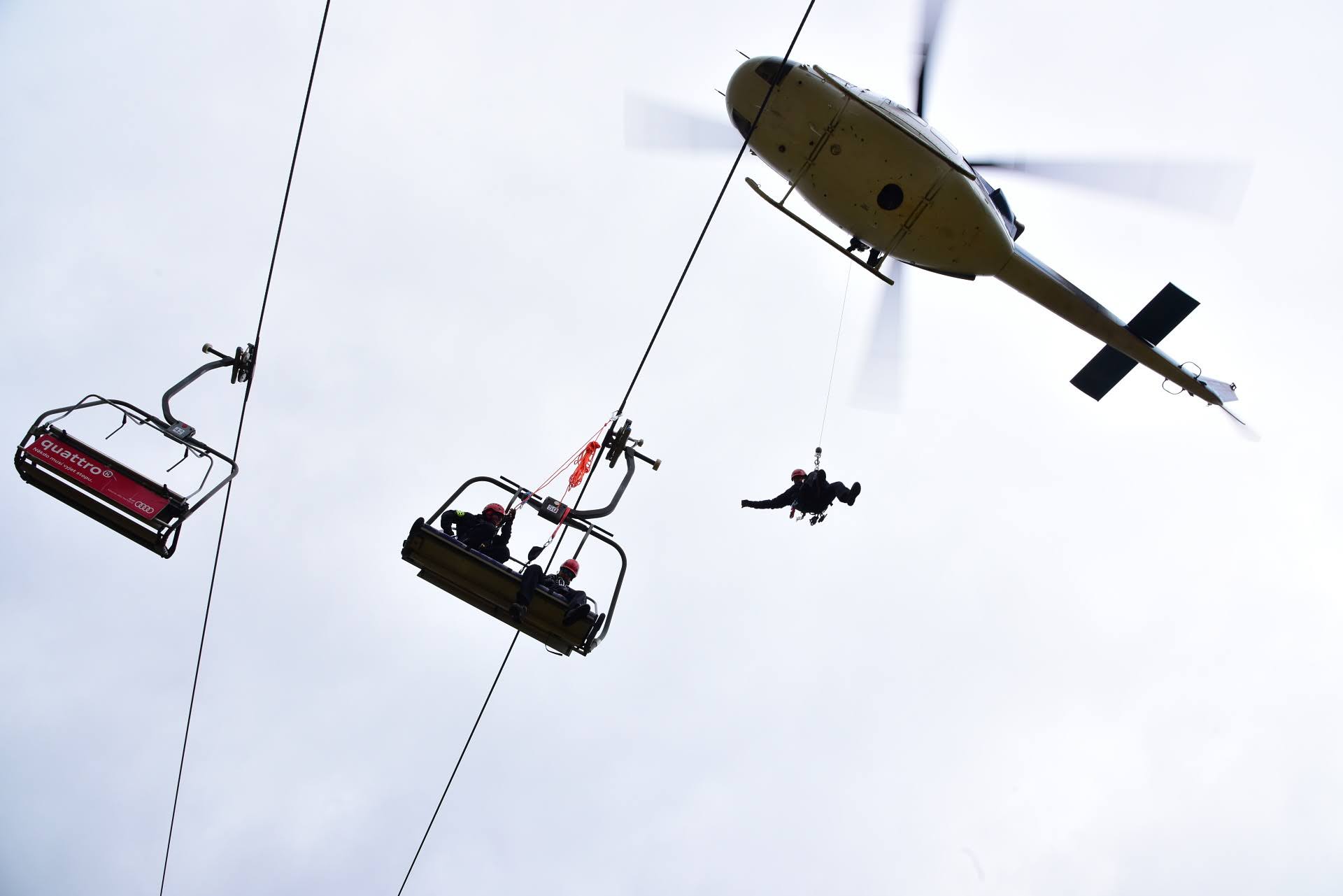 Letečtí záchranáři HZS hl. m. Prahy ve spolupráci s LS PČR na závěr roku cvičili v Skiareálu Špindlerův Mlýn záchranu osob z lanovky. Tento výcvik je náročný na spolupráci, koordinaci hasičů a posádky vrtulníku, v tomto případě Bell 412.