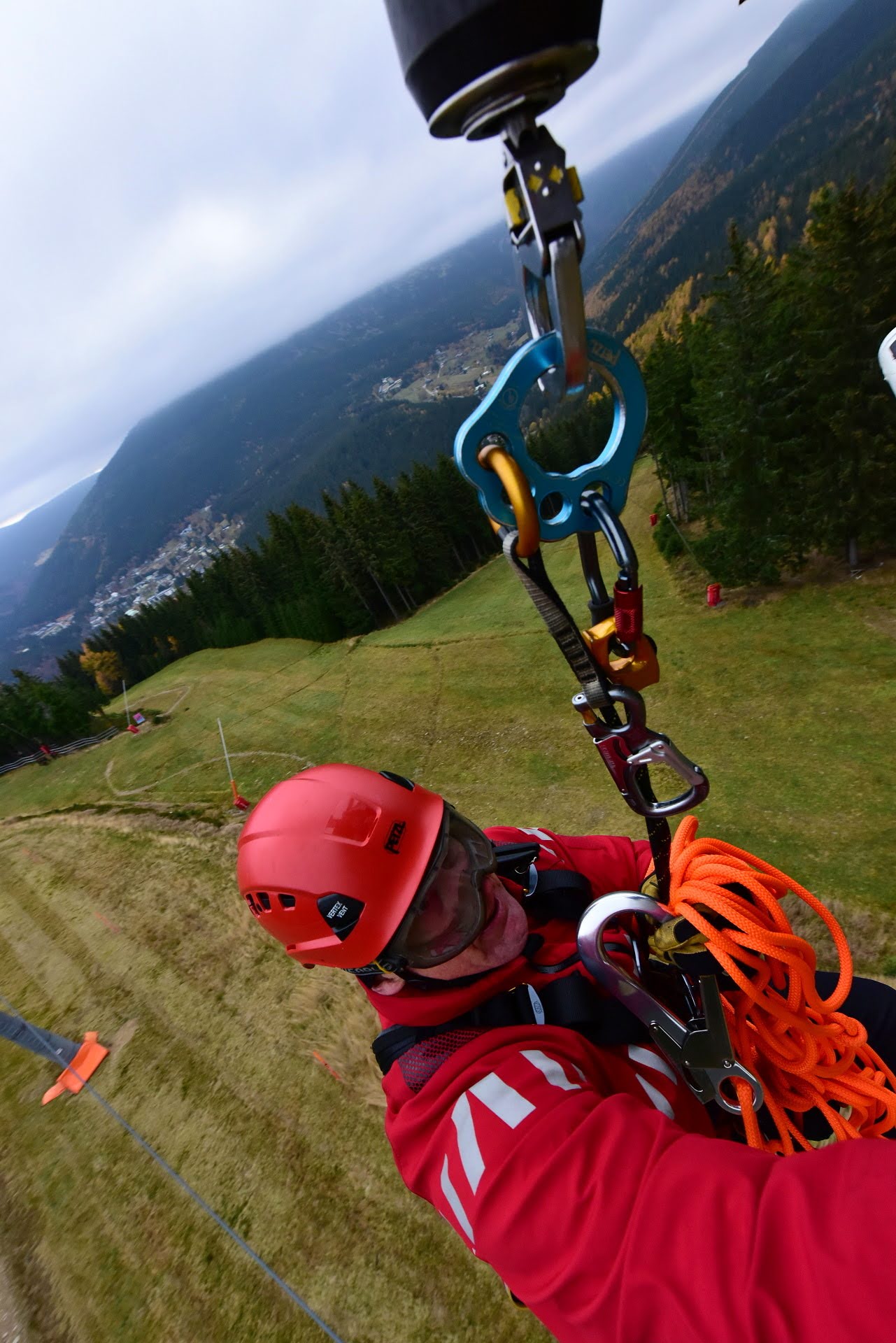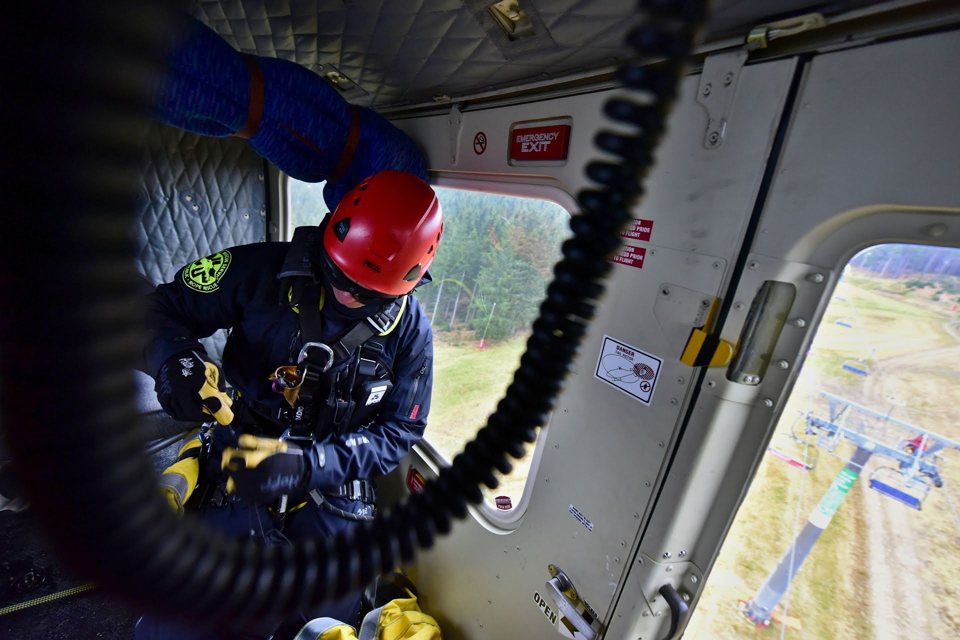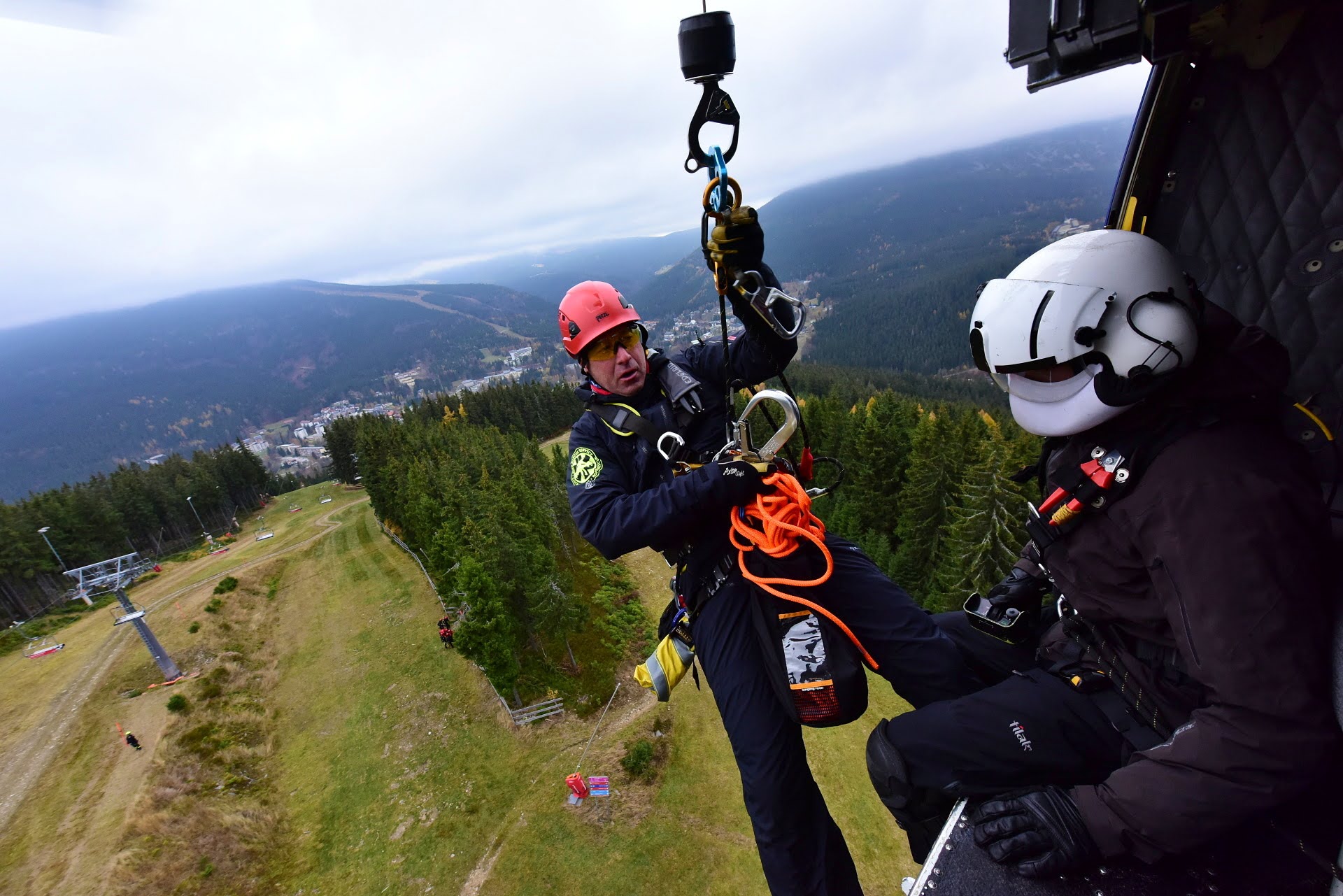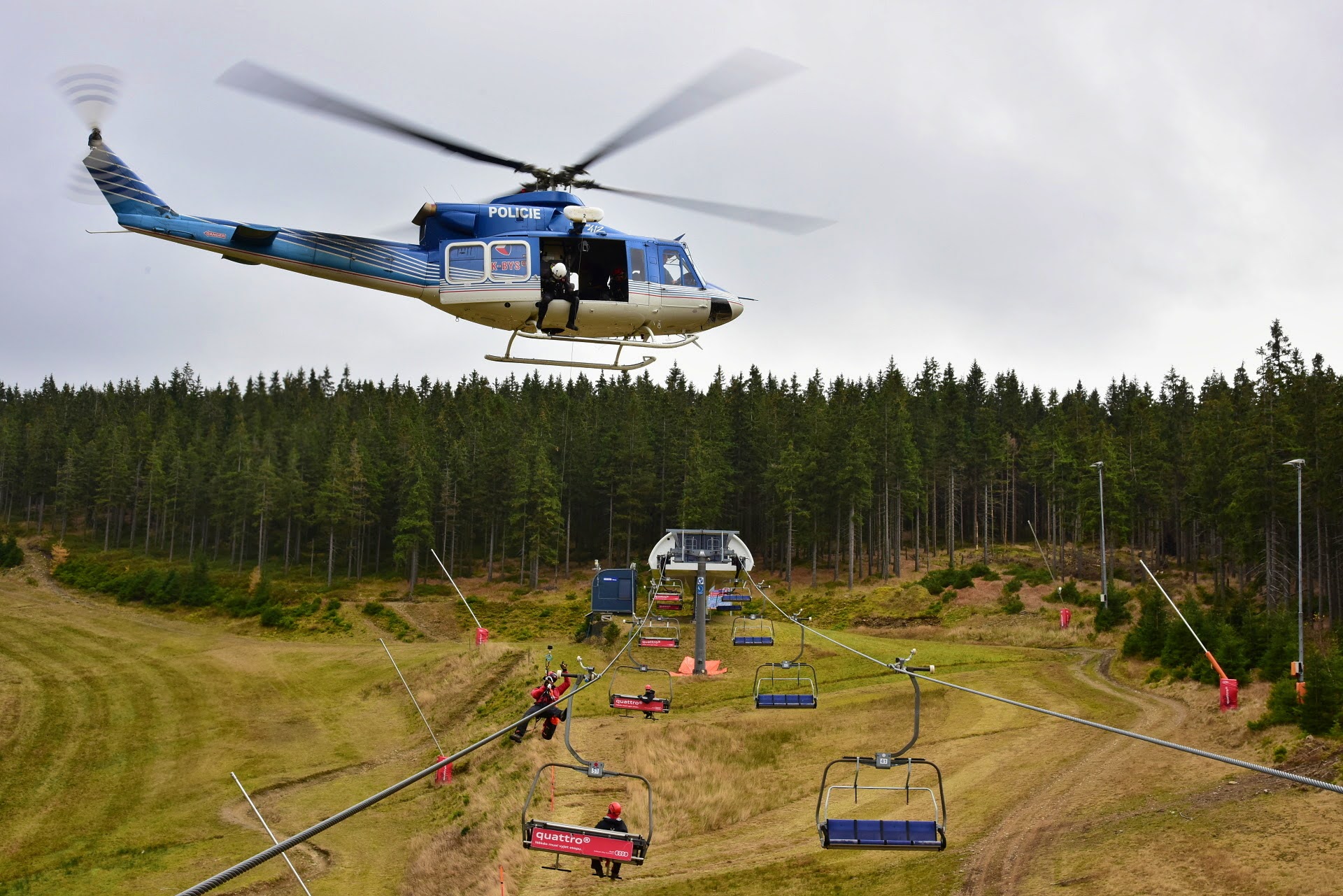 Letečtí záchranáři HZS hl. m. Prahy ve spolupráci s LS PČR na závěr roku cvičili v Skiareálu Špindlerův Mlýn záchranu osob z lanovky. Tento výcvik je náročný na spolupráci, koordinaci hasičů a posádky vrtulníku, v tomto případě Bell 412.