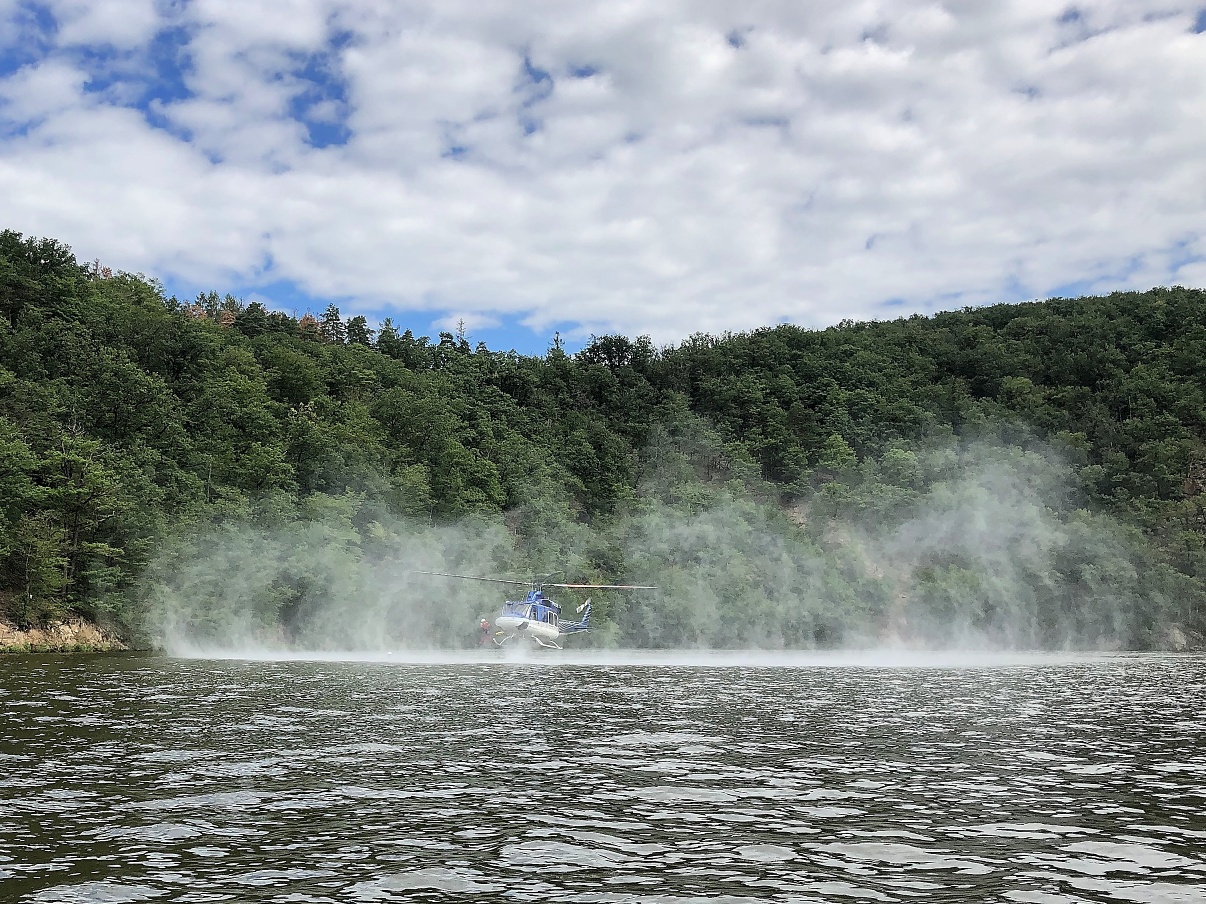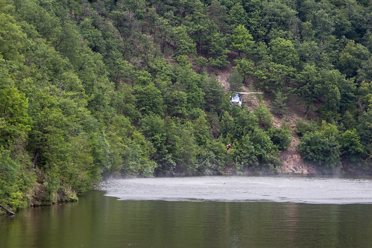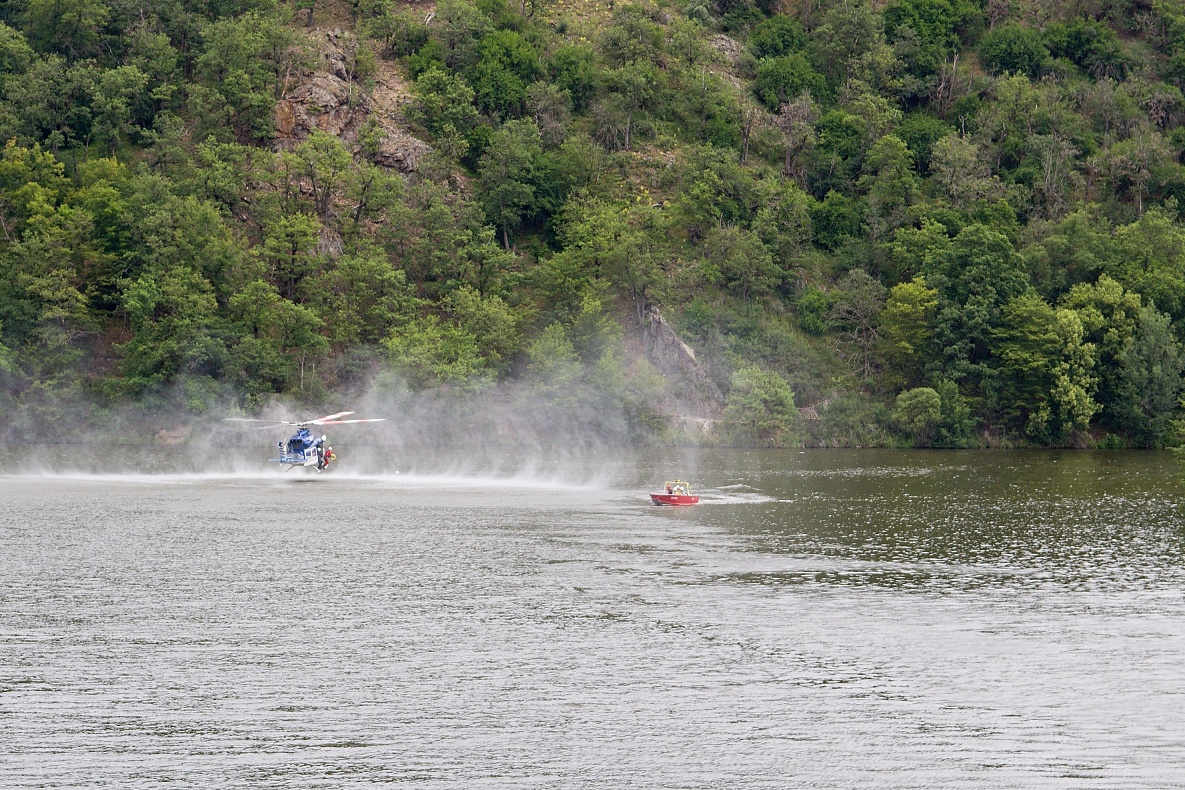 Letečtí záchranáři nacvičovali na hladině přehrady