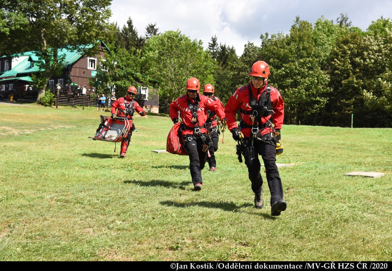 Vše se odehrávalo v reálných podmínkách s nutností vyhledání místa zásahu posádkou vrtulníku LS PČR Bell 412, spuštěním záchranářů k pacientům, jejich základní ošetření, příprava k bezpečnému transportu na palubu vrtulníku a následná záchrana jeřábováním s přeletem na palubě k místu předání do péče pozemního personálu.