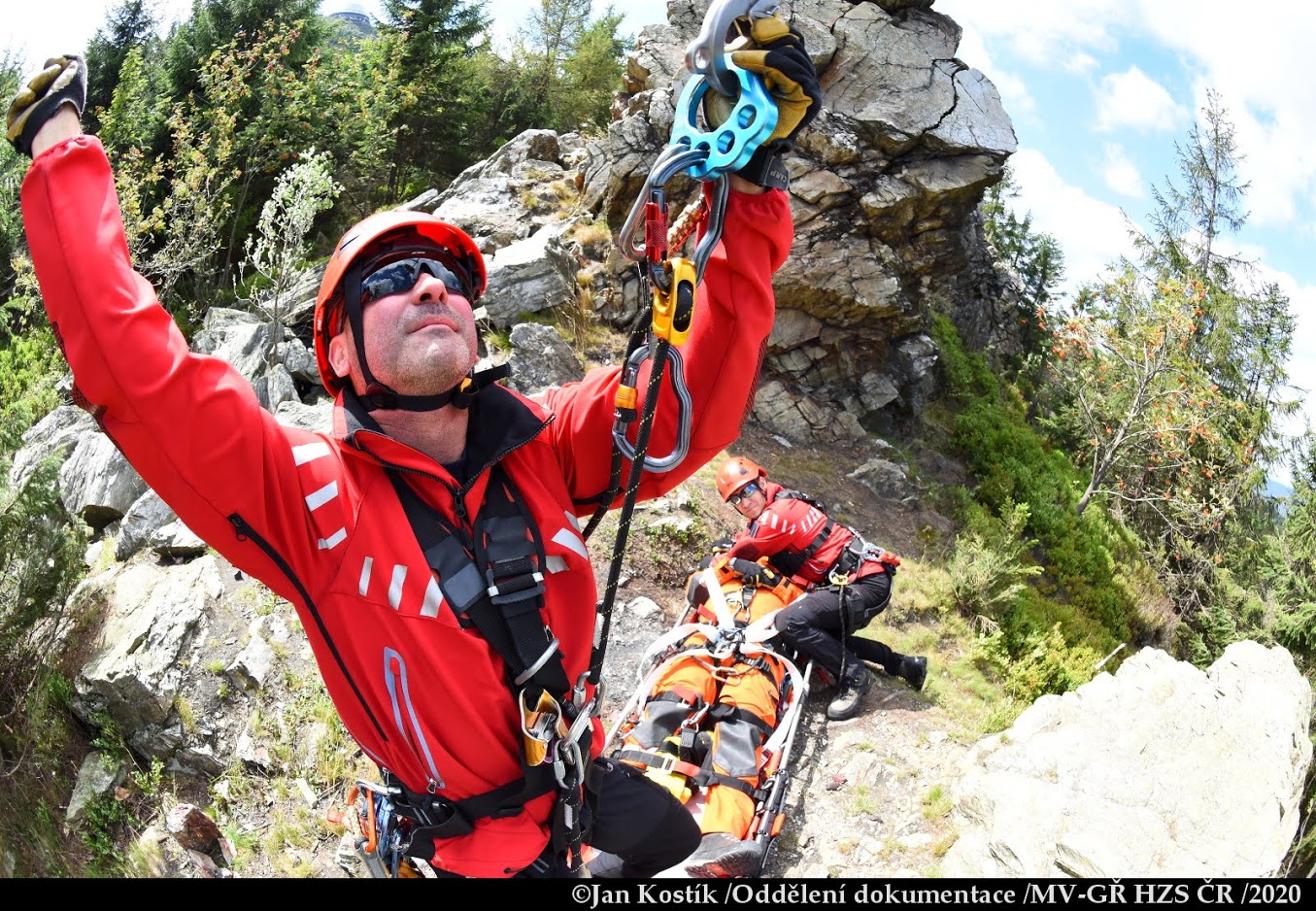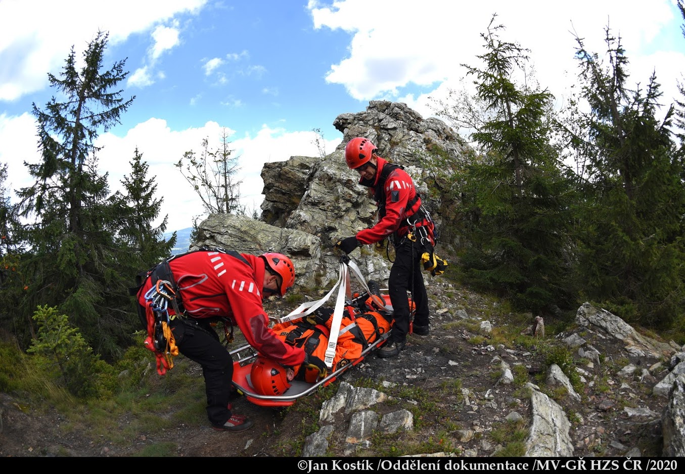 Výcvik byl rozdělen na tři tématické bloky a tři místa záchrany. Záchranu osoby pod skalním útvarem pomocí nosítek za využití nového...