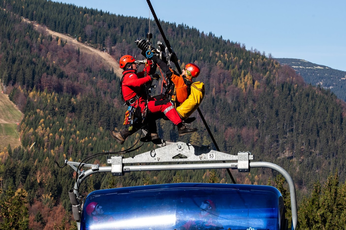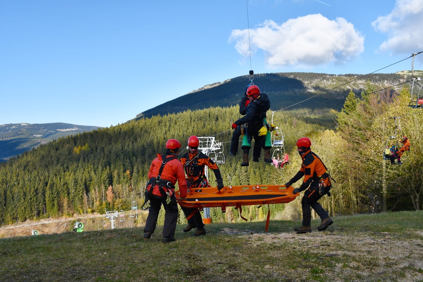 Podzim letečtí záchranáři HZS hl. m. Prahy věnovali zejména nácviku záchrany z lanovek. Přitom byli nově vybaveni oblečením od Direct Alpine. Společně s lezci z dalších krajů plně využili možnost výcviku na několika druzích lanovek ve Skiareálu Špindlerův Mlýn. Vyzkoušeli a vysvětlili si například různé druhy otevření bezpečnostních systémů nejen na sedačkových lanovkách, ale i kabinkách. Na místě přispěla svými bohatými znalostmi a zkušenostmi rovněž Horská služba ČR.
