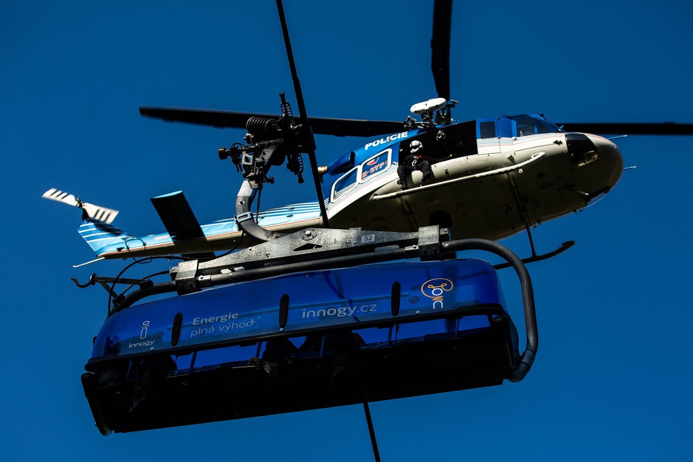 "Výcvik jsme se pokusili nasměrovat do reálných podmínek se skutečnými lidmi, a to jak s dětmi a dospělými, tak i s osobami s omezenou hybností. Všem těmto zúčastněným, zejména pak Hance Doležalové, bývalé bikerce a současné reprezentantce v Trail-O, která po úrazu zůstala na invalidním vozíku a horskému vůdci Dušanu Stuchlíkovi, bychom rádi touto cestou poděkovali, neboť jejich nasazení, tepelná výdrž a nejistota, co bude dál, nám velmi pomohly k přiblížení reality. Po dohodě s provozovatelem a dalšími kraji jsme vyzkoušeli z našeho pohledu šetrnější a rychlejší metodu záchrany. Z praxe známe, jak je nepříjemné mít nad hlavou vrtulník. V našem případě se jednalo o vrtulník značky Bell 412 Letecké služby PČR, který tlačil studený vzduch na už tak vymrzlé osoby. Za pomoci jeřábu a leteckých záchranářů vrtulník postupně rozmístil na podpěry a sedačky lezce, kteří již bez nutnosti jeho další asistence cvičně zachránili osoby spuštěním k dalším záchranářům. Byla též vyzkoušena záchrana vozíčkářů vytažením na lyži vrtulníku s následným spuštěním do připravených nosítek a jejich transport do bezpečí.