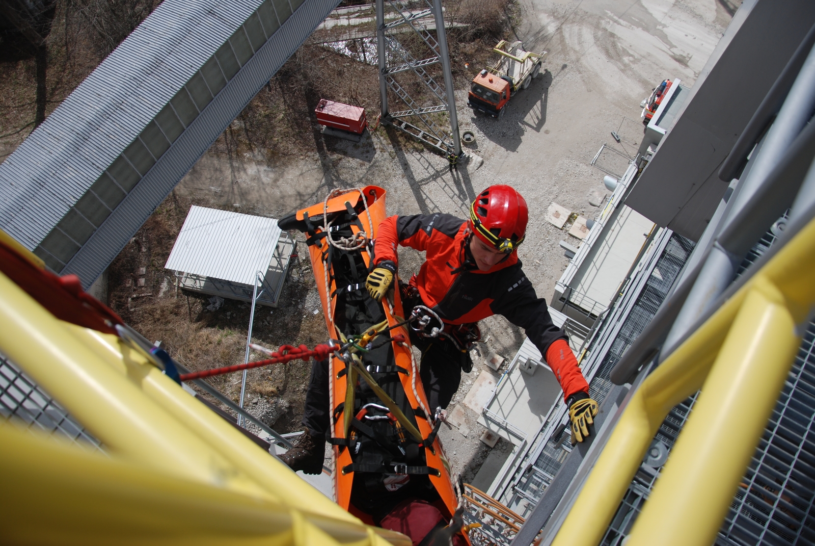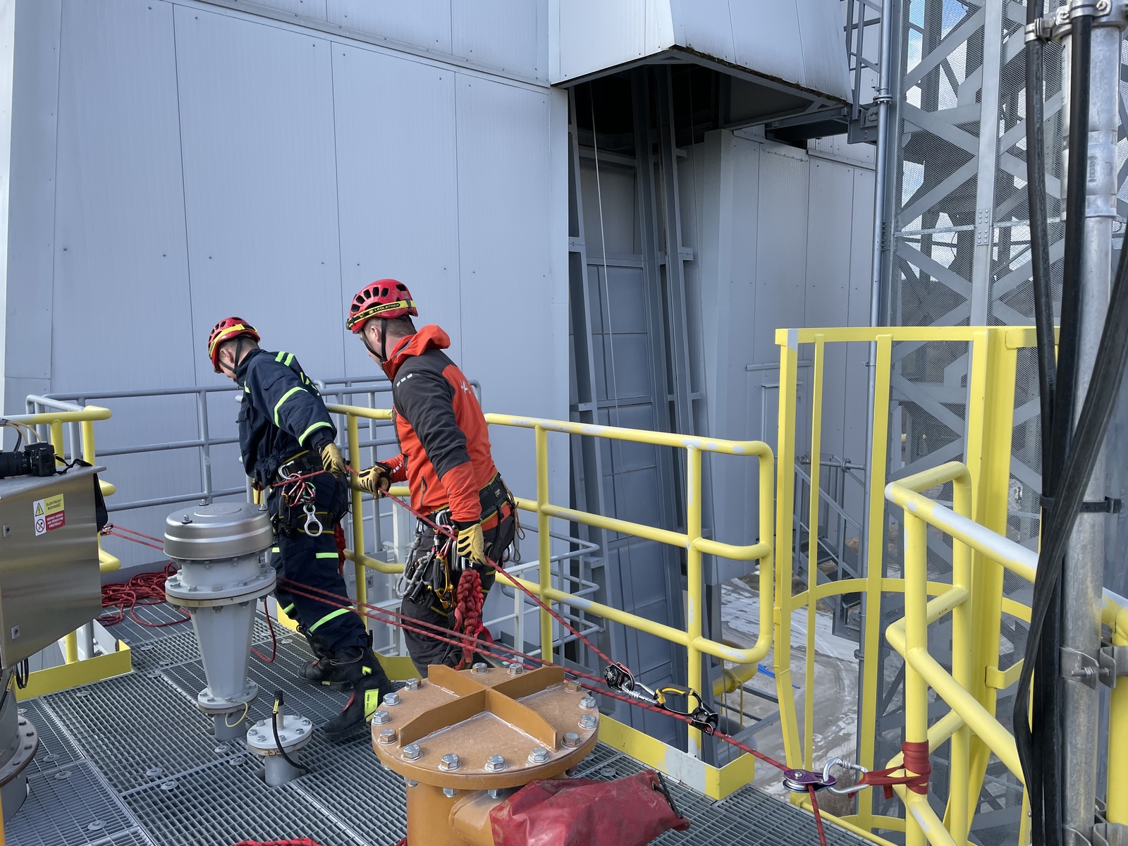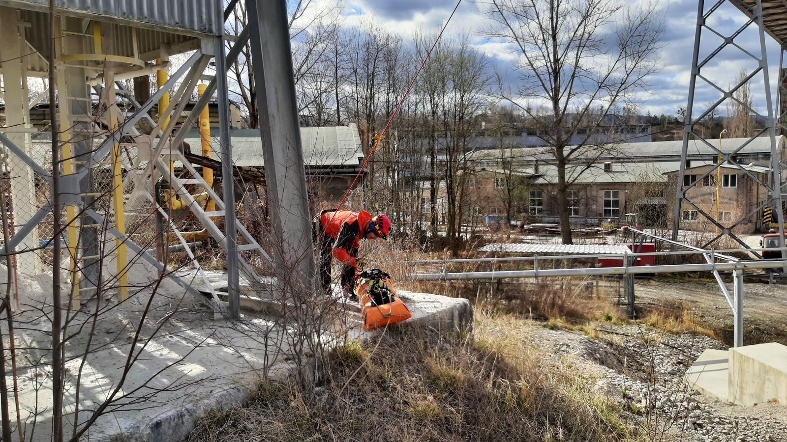 Hasiči při nácviku pod dohledem instruktora využili několik technik pro podobnou činnost - například spuštění na laně přímo dolů nebo transport nosítek přes traverz na laně mezi dvěma body. Samozřejmostí bylo rovněž ověření znalostí v oblasti jištění a zásad bezpečnosti samotných zachránců.