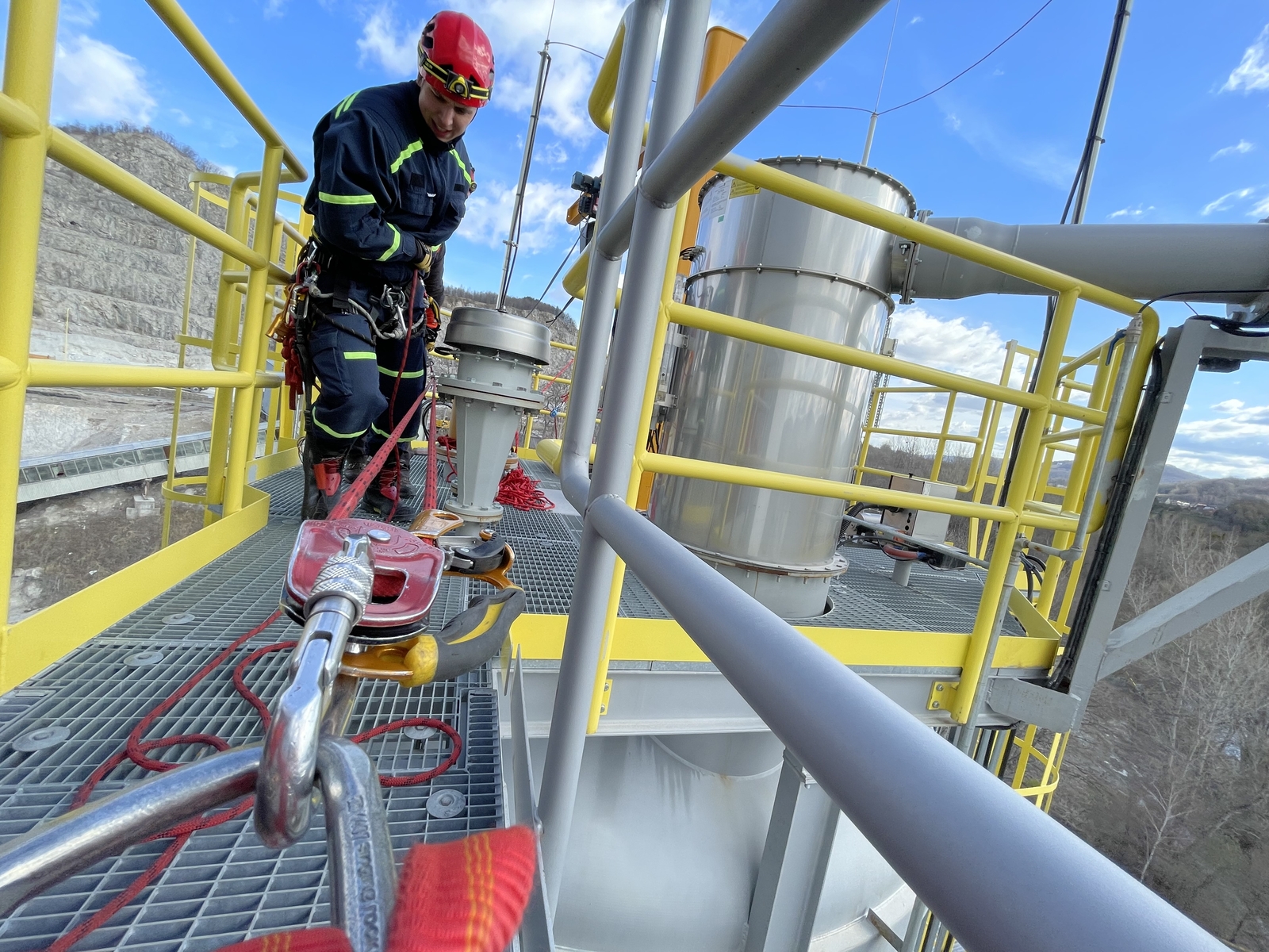 Simulaci reálného zásahu na otevřeném technologickém zařízení ve Štramberku umožnila hasičům společnost LB Cemix, s.r.o.