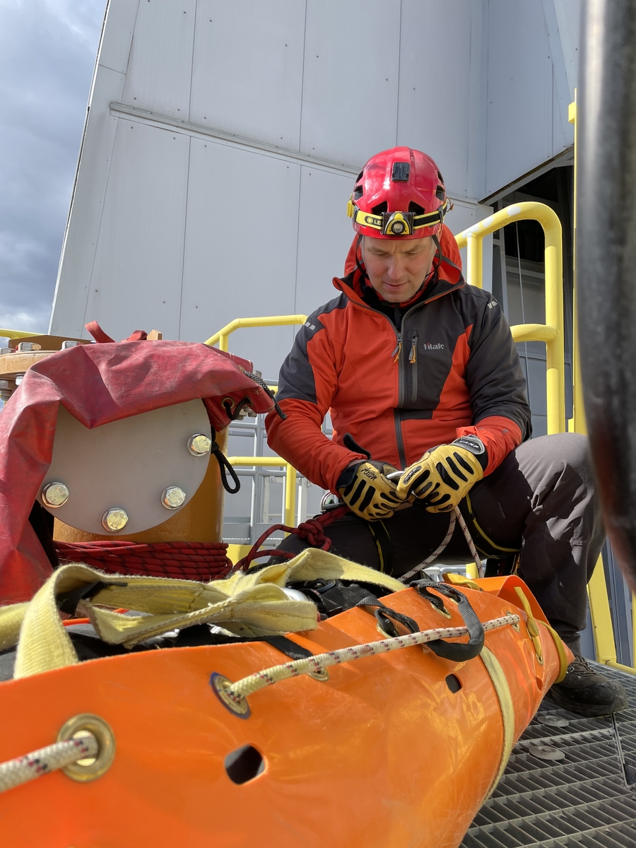 Lezci využívali k záchraně figuranta svinovací nosítka SKED, která fixují transportovanou osobu ve vodorovné či svislé poloze a jsou ideální pro využití právě s lanovou technikou.