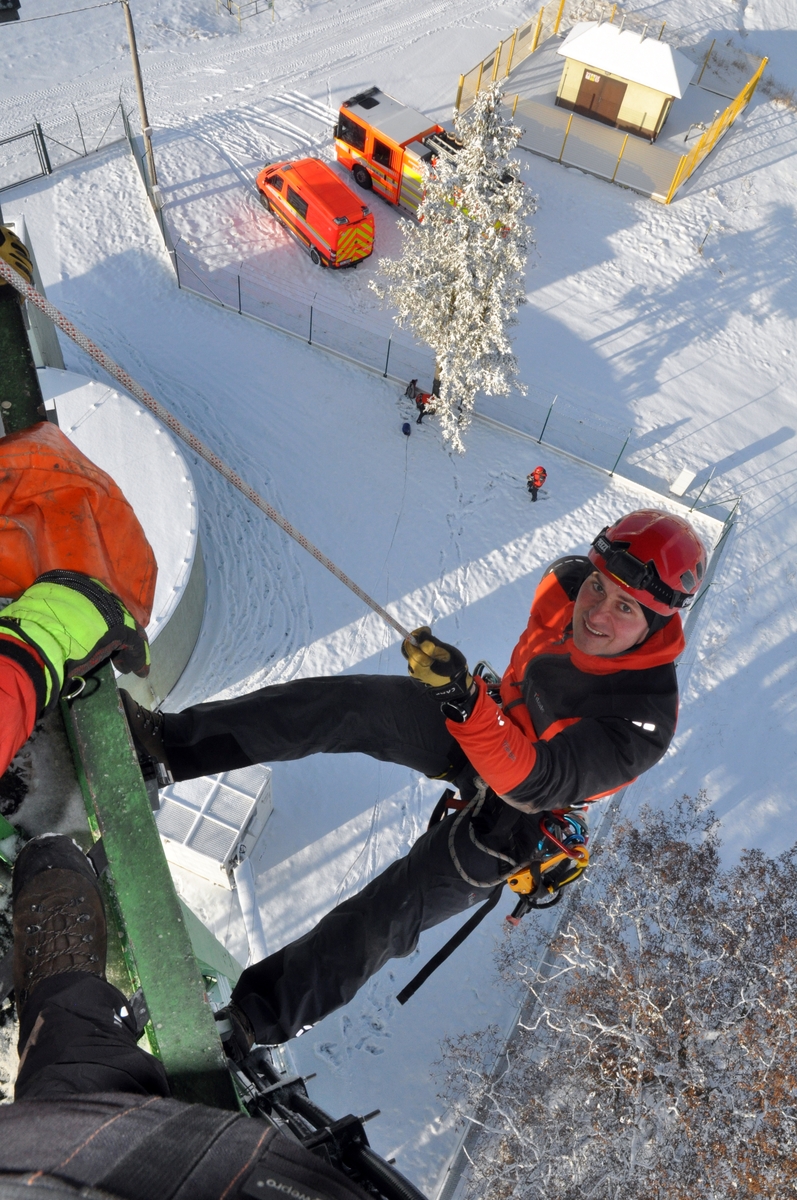 Na 30metrovém vodojemu hasiči nacvičovali záchranu osob jak z vnější, tak z vnitřní části objektu, trénovali postupové jištění a slaňování s vybavením i bez něj.