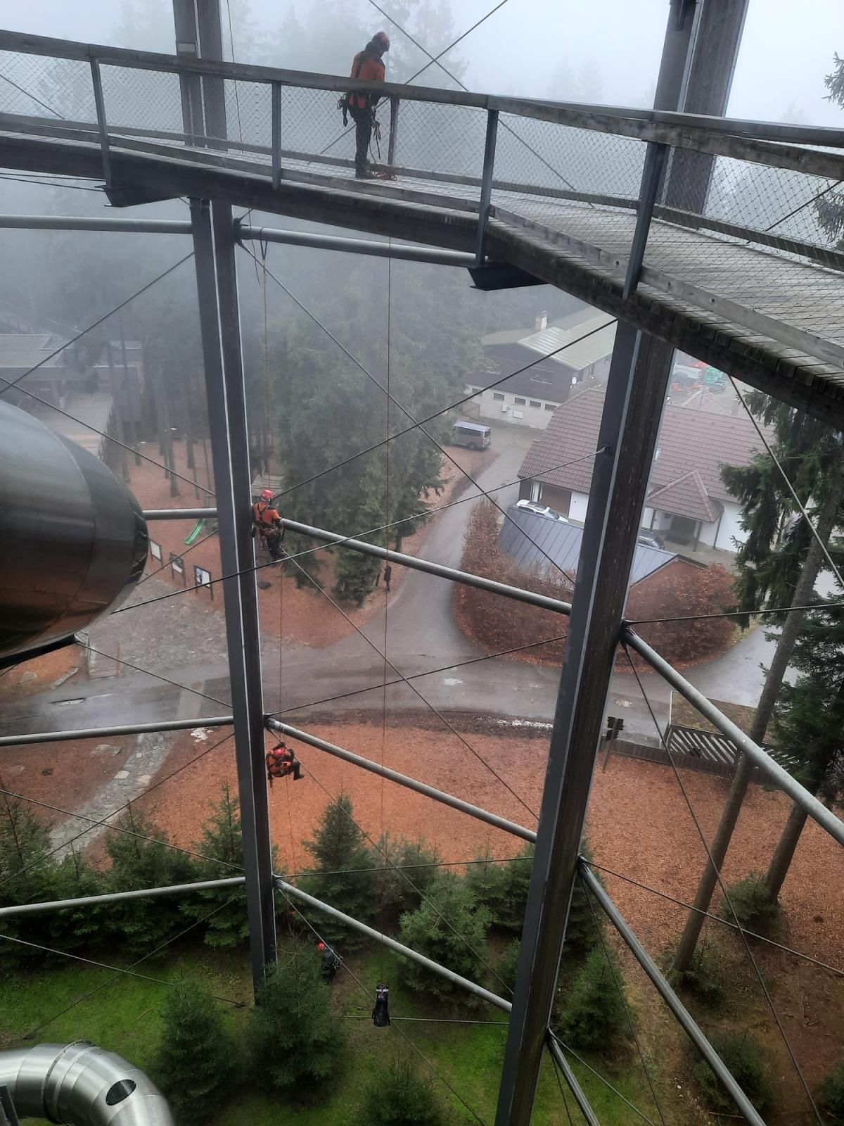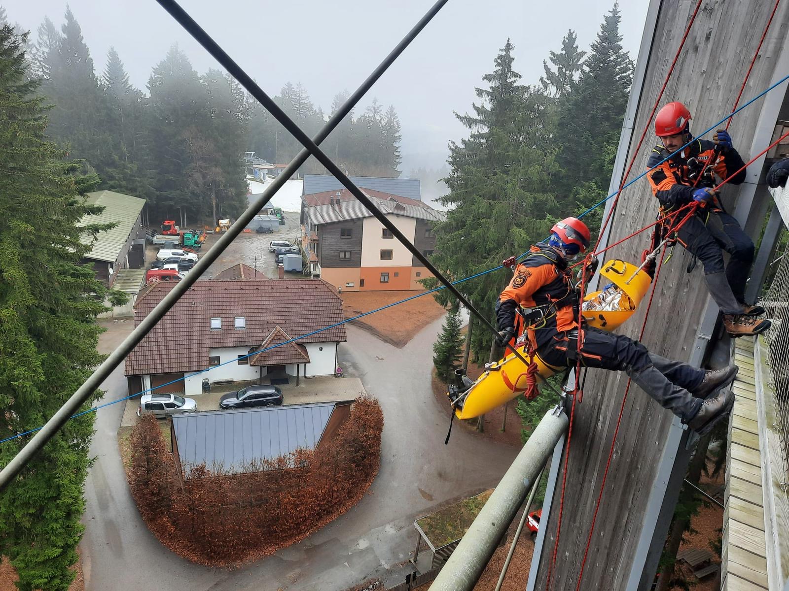 V prvním dnu na ně čekala záchrana osoby uvíznuté v tobogánu na Stezce korunami stromů na Kramolíně, včetně transportu zraněné osoby na dané místo, kde na další ošetření čekala posádka RZP. Hasiči nejprve provedli zajištění zraněné osoby v tobogánu a vytažení do bezpečného prostoru. V podestě stezky byla umístěna zraněná osoba do transportních nosítek a pomocí lanového traverzu přesunuta na místo k dalšímu ošetření RZP. Po dokončení této modelové situace si hasiči dále procvičovali bezpečný pohyb po konstrukci, práci s nahazovacími prostředky a další lanové či záchranné techniky.