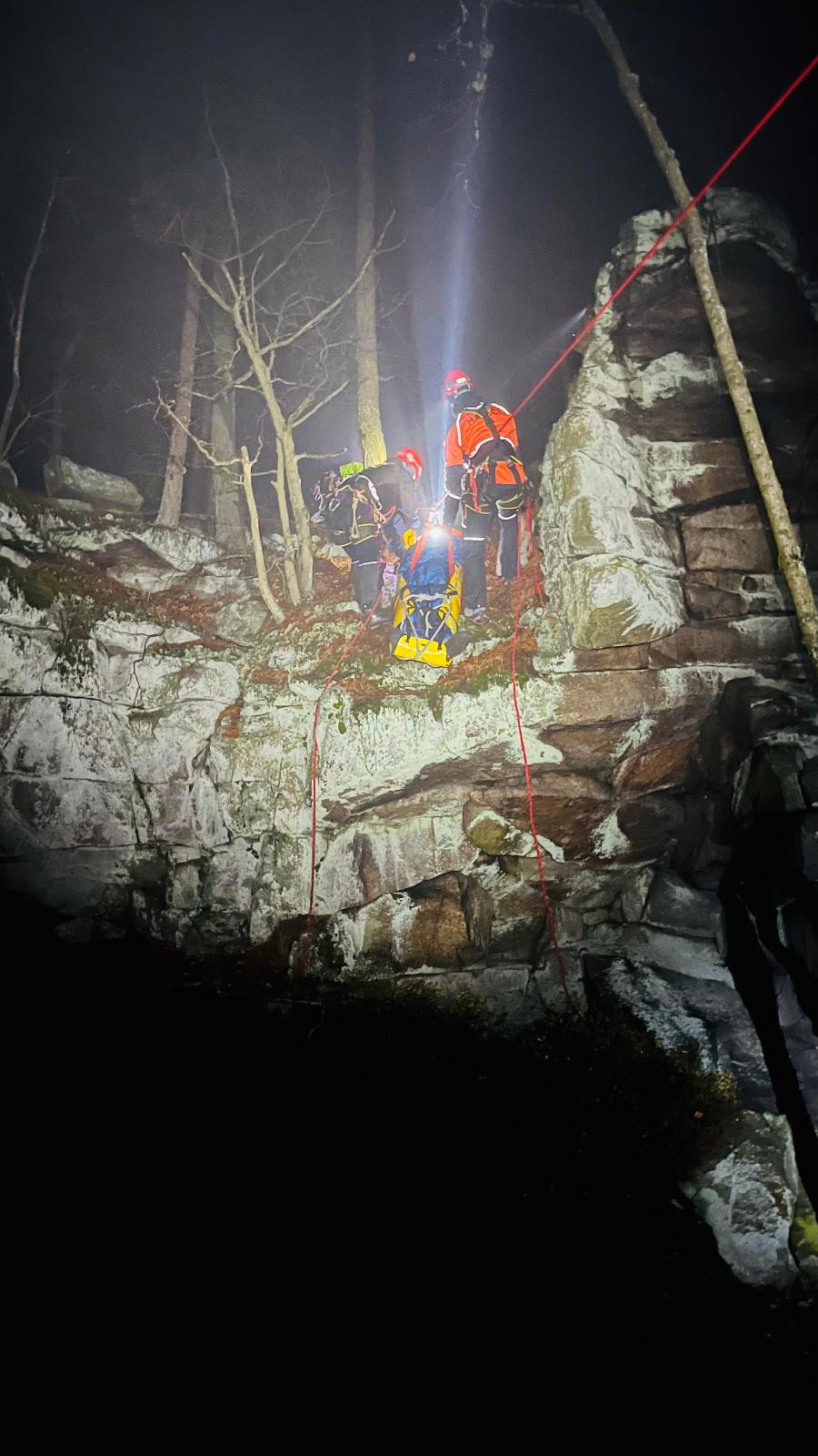 hodinách. Úkolem bylo nalézt osobu, která byla ve špatném zdravotním stavu a nacházela se v těžko dostupném terénu. Po nalezení postižené osobě hasiči poskytli předlékařskou péči a v nosítkách ji vytáhli z rokle za pomocí lanové techniky tzv. protiváhou. Další částí úkolu byl transport osoby přes skalní masiv, který bránil další cestě v záchraně. K transportu na skálu byl opět využit lanový traverz. Po provedené záchraně byla osoba transportována v nosítkách až do vozidla lezců, které se nacházelo cca 400 m od místa záchrany. Celý tento zásah se odehrával pouze za svitu měsíce a světel, které má každý lezec ve své výbavě.