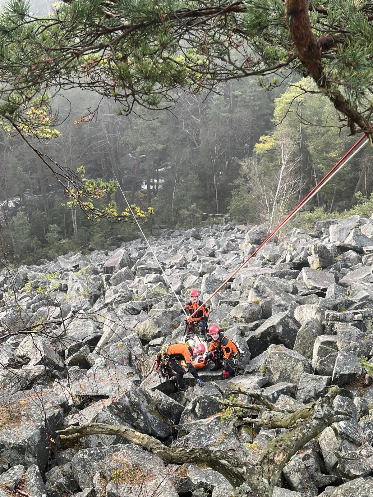Záchrana v této lokalitě se podstatnou dobu odehrávala za silné mlhy, kdy byl terén pro