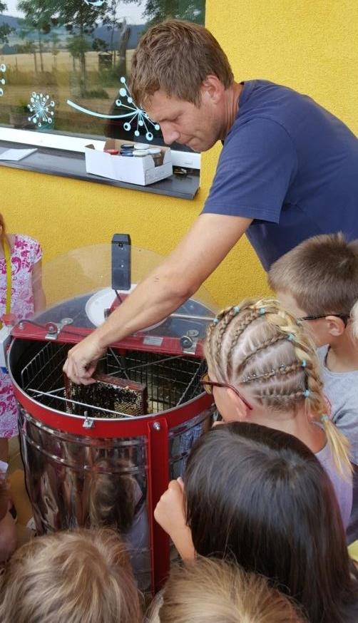 Dnešní akce byla zároveň i poslední před prázdninami. Sladkou medovou tečku obstaralo stáčení a ochutnávka lahodného čestického medu od školního včelstva. Nezbývá nám nic jiného, než dětem a vyučujícím popřát pohodové a zasloužené prázdniny.