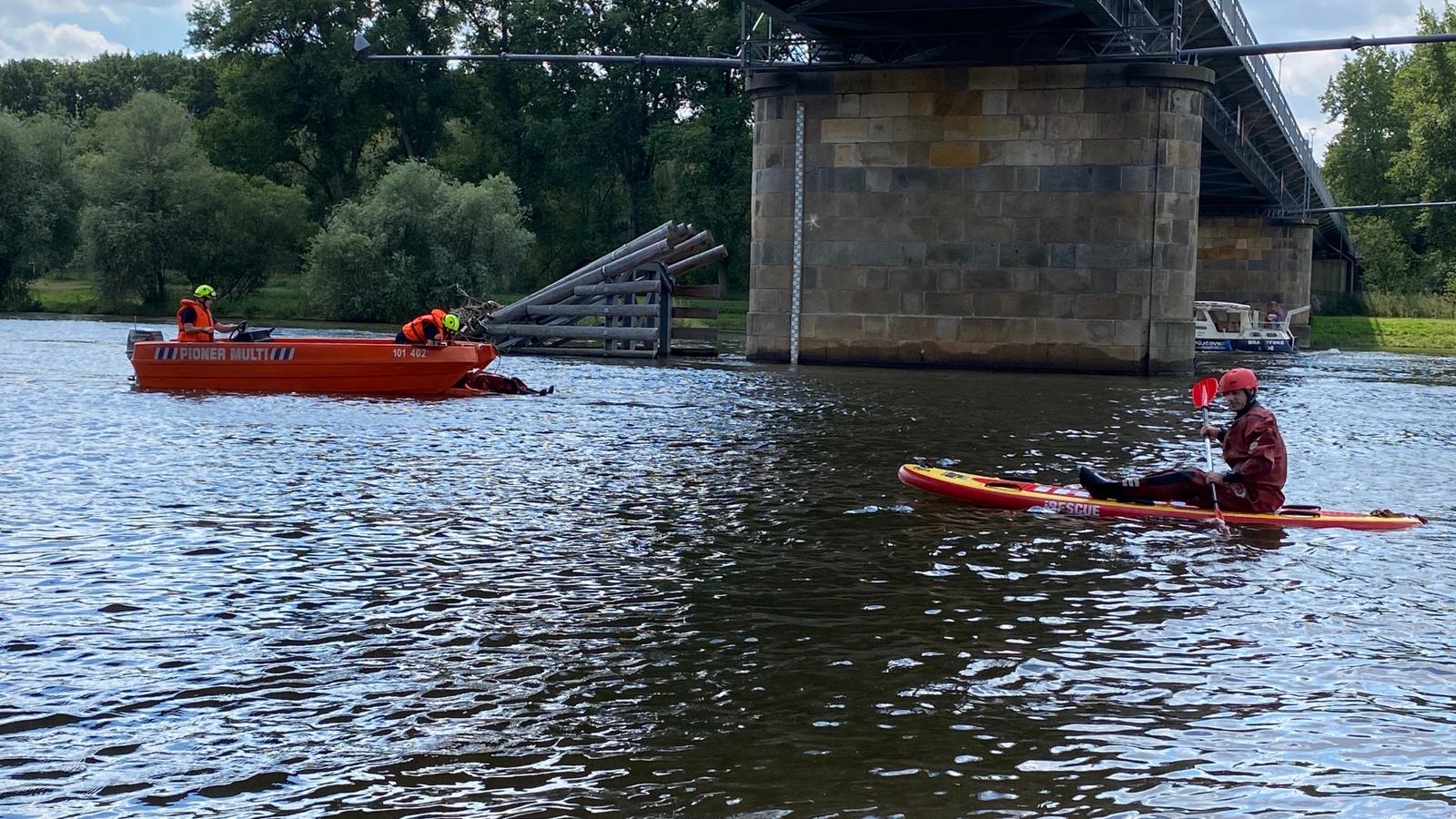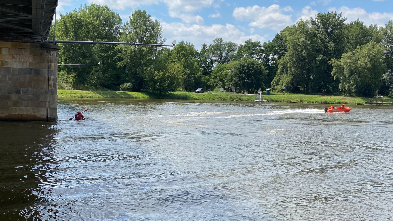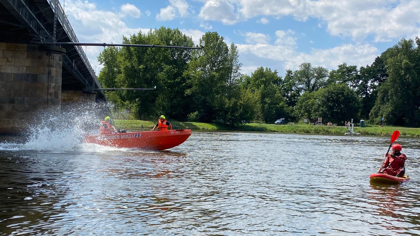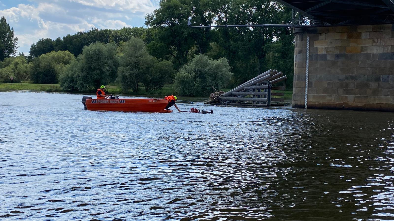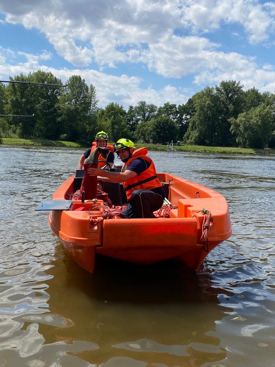 Ve čtvrtek 23. července v odpoledních hodinách přitahovala pozornost kolemjdoucích v blízkosti starého mělnického mostu skupina hasičů, kteří kousek za soutokem Labe s Vltavou absolvovali výcvik na vodní hladině.