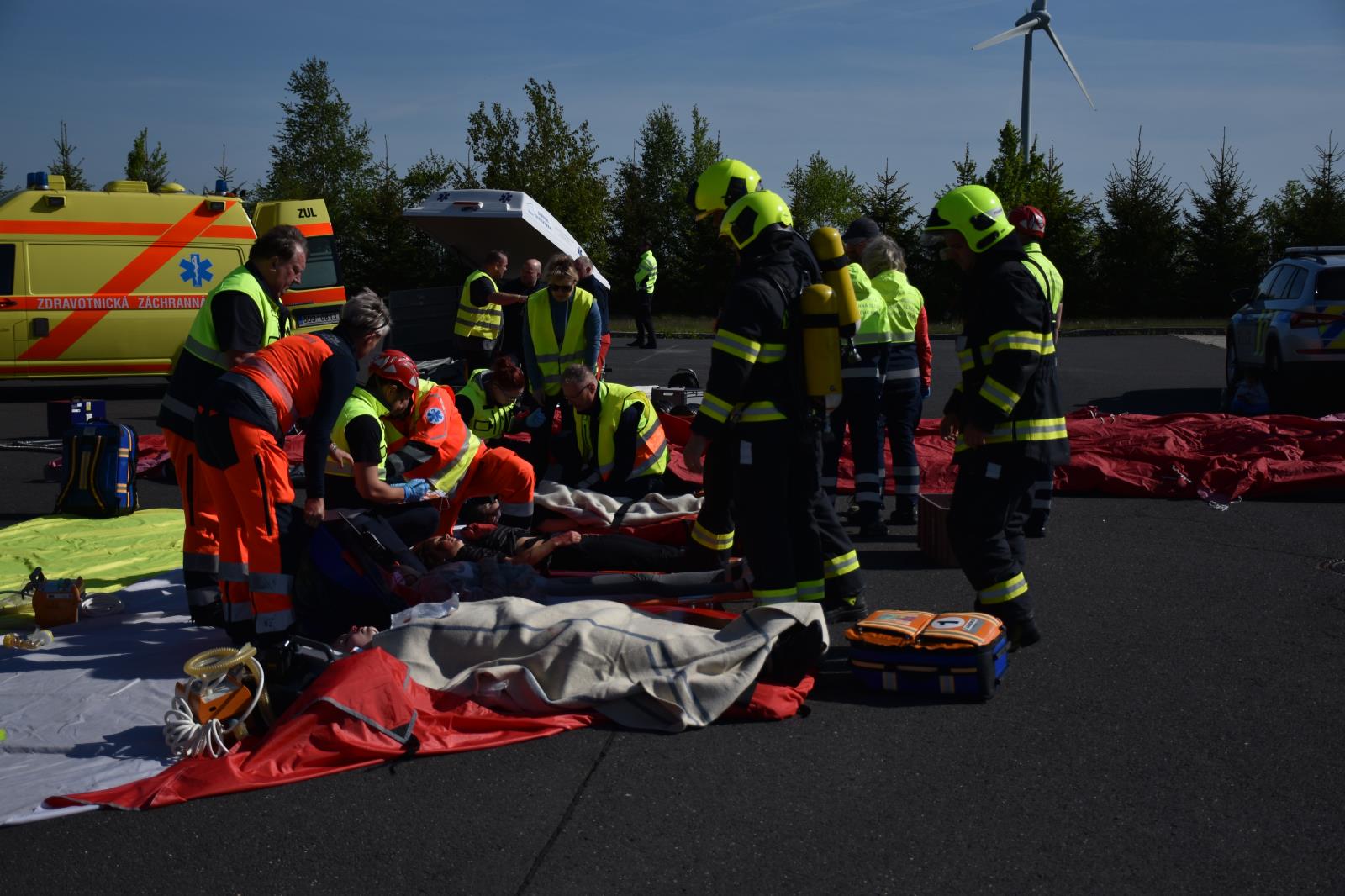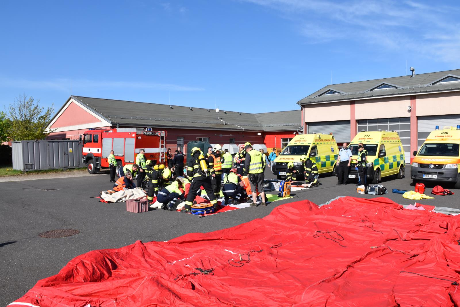 16. 5. 2022 45 profesionálních hasičů, 45 policistů a 100 záchranářů se dnes zúčastnilo metodického školení složek IZS Mimořádná událost s hromadným postižením osob, které se konalo na stanici HZS Ústeckého kraje v Petrovicích. Cílem cvičení bylo osvojení si metody třídění zraněných osob všemi složkami metodou START.