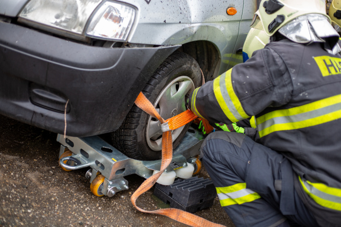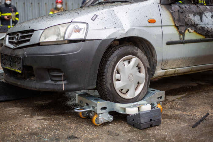 Součástí výcviku byla praktická ukázka transportních vozíků kolegů z HZS Olomouckého kraje. Ty slouží k vytažení uhašeného elektromobilu z objektů – například z podzemních garáží – na volné prostranství, kde může pokračovat ochlazování baterií, nebo kde je vůz možné ponořit do vody.