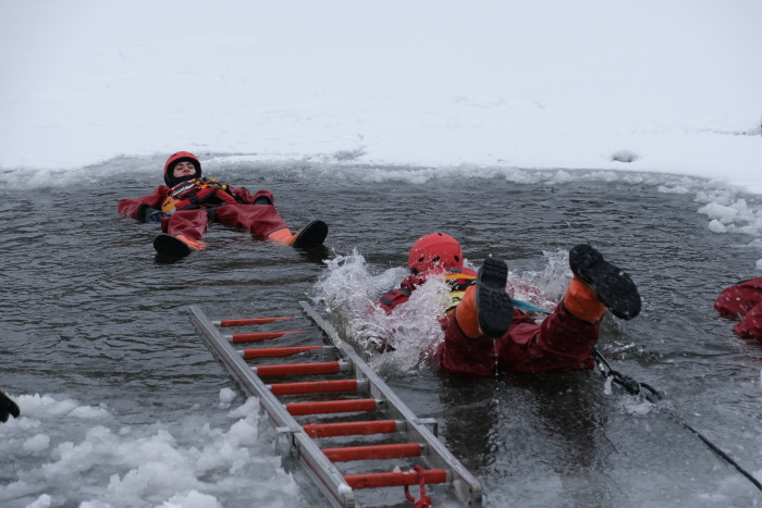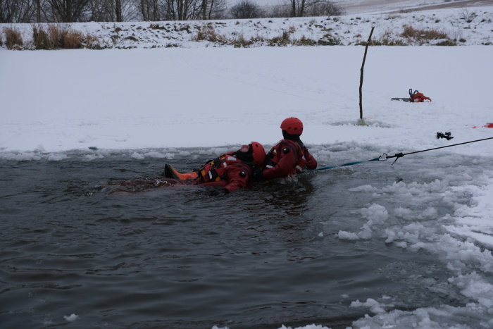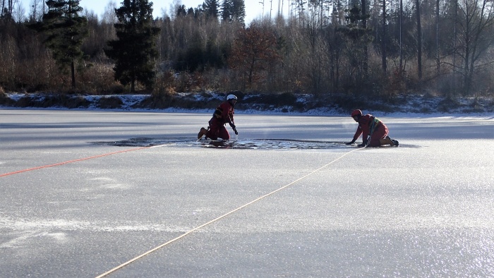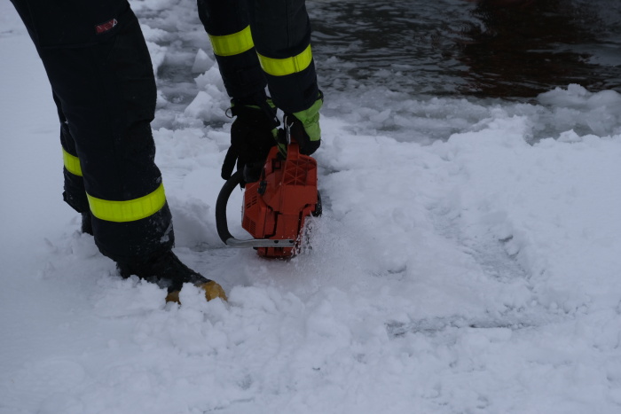 Před samotným výcvikem musí hasiči často vyřezávat otvor do ledu pomocí motorové pily. Například na Balatonu (u Vítkova) měl minulý týden led tloušťku 5 až 7 cm, tento týden na Bílovecké přehradě to bylo přes 10 cm. Po každém výcviku byl vyřezaný otvor zabezpečen viditelně nataženou vytyčovací páskou s nápisem „Hasiči – zákaz vstupu“, aby se minimalizovalo riziko pádu do tohoto prostoru.