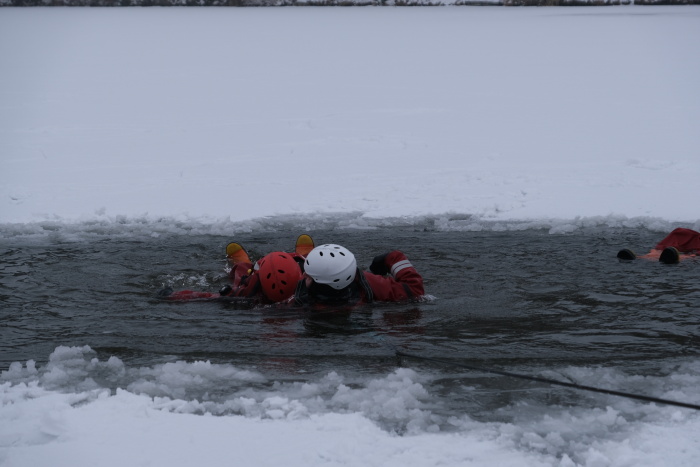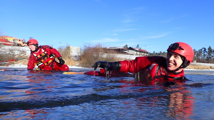 „Lední“ výcvik tak například absolvovali tento týden na Bílovecké přehradě zdejší profesionální hasiči ze stanice Hasičského záchranného sboru Moravskoslezského kraje (HZS MSK) ze všech tří čtyřiadvacetihodinových směn, minulý týden jejich kolegové z Vítkova na vodní nádrži Balaton (asi 2,5 km jihovýchodně od Vítkova) a novojičínští zase na Čerťáku u Kojetína.