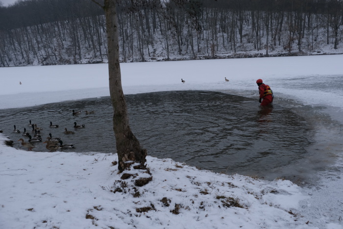 Například při úterním (25.1.2022) výcviku první ze tří směn na Bílovecké přehradě to vypadalo, že hasiči budou mít bez práce (tedy bez řezání ledu) vhodnou plochu i s tenkým ledem hned u břehu, kde se předtím usídlilo hejno (nepříliš) divokých kachen. Problémem zde nakonec byla malá hloubka...