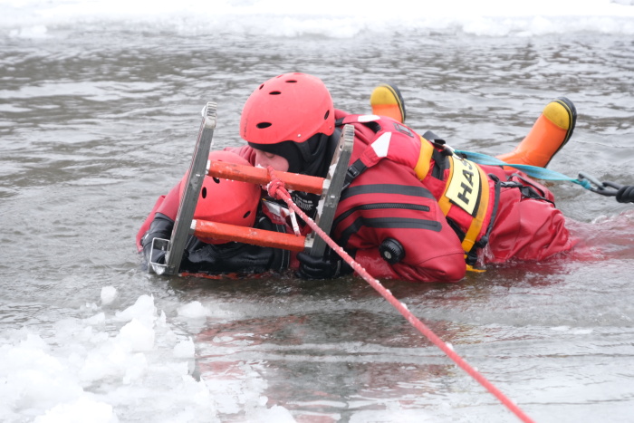 Výcviky jsou obdobné. Trénují se pobyty a pohyby v ledovém vodě a různé postupy záchrany topících se osob, například pouze hasičem, přivázaným k lanu, pak pomocí žebříku, záchranného pytlíku, hasičské hadice, páteřní desky a také pomocí nafukovacích záchranných saní RS5. Cvičící ze stanic HZS MSK jsou vybaveni moderními nepromokavými kombinézami (včetně záchranných vest) a přilbami.
