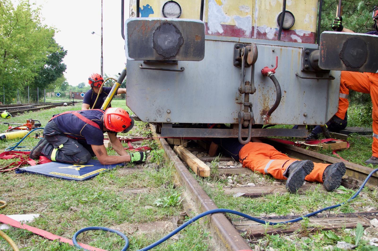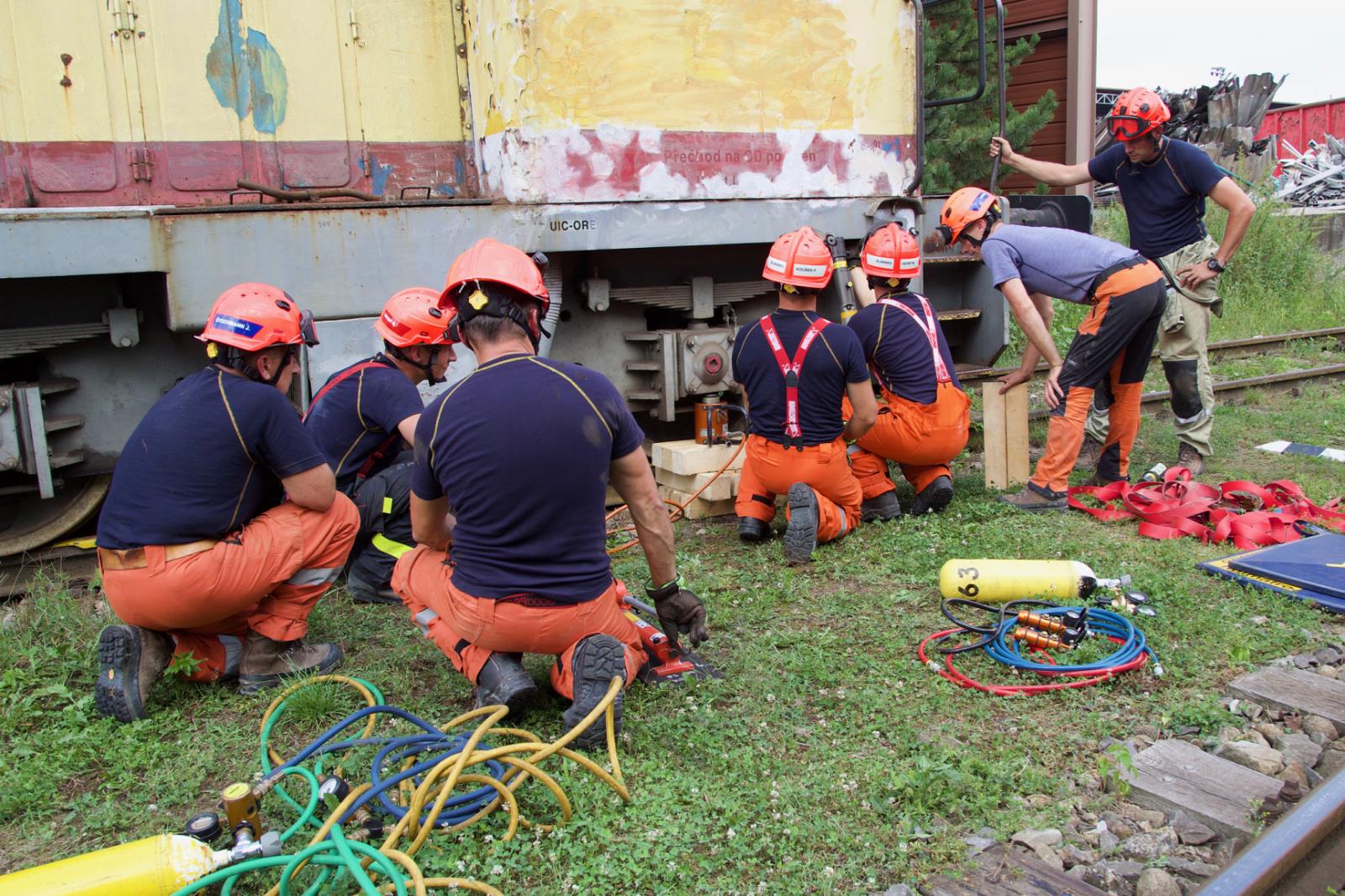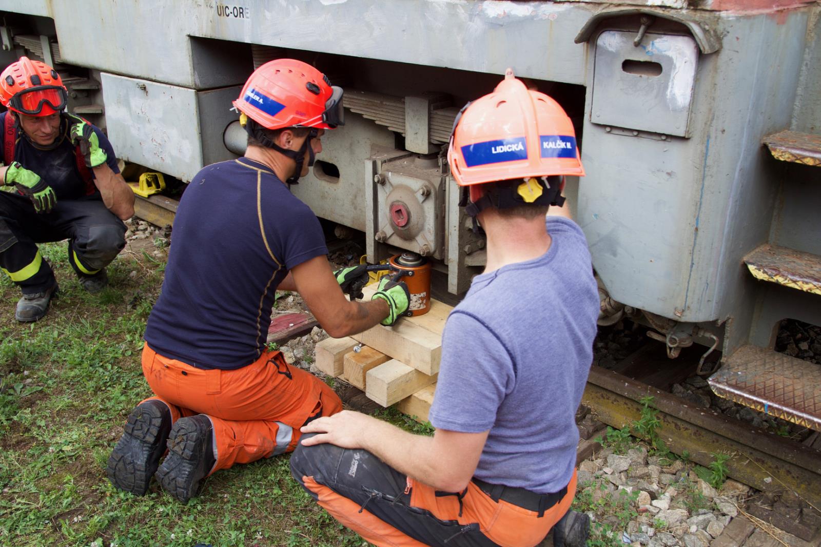Následně se skupina přesunula do Sokolnic na vrakoviště, kde výcvik pokračoval zvedáním těžkých břemen (vlak a nákladní auto) bez pomoci jeřábu.