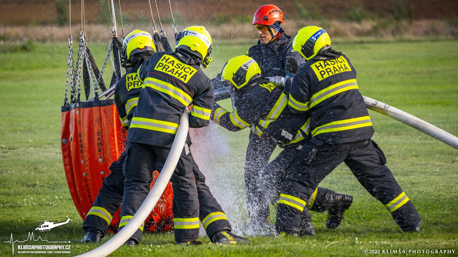 Profesionální a dobrovolné jednotky cvičily v pondělí 19. září 2022 na letišti Točná plnění bambi vaku pod vrtulníkem Policie ČR. Cvičení se postupně zúčastnily jednotky pražských profesionální a dobrovolných hasičů z Prahy.