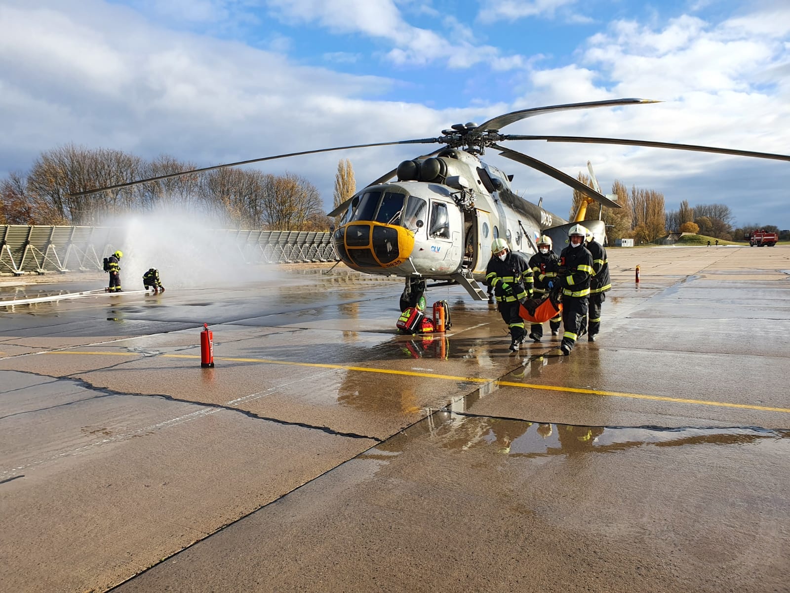 Hasiče dnes, 5. listopadu, dopoledne prověřila letecká nehoda vrtulníku MI 17 s devíti osobami na palubě. Ve chvíli, kdy vrtulník hlásil problémy na motoru, byl ihned vyhlášen pro vojenskou hasičkou jednotku letiště Pardubice „Místní pohotovost“, která následně přešla na „Plnou pohotovost“ a na místo se tak soustředily složky integrovaného záchranného systému.