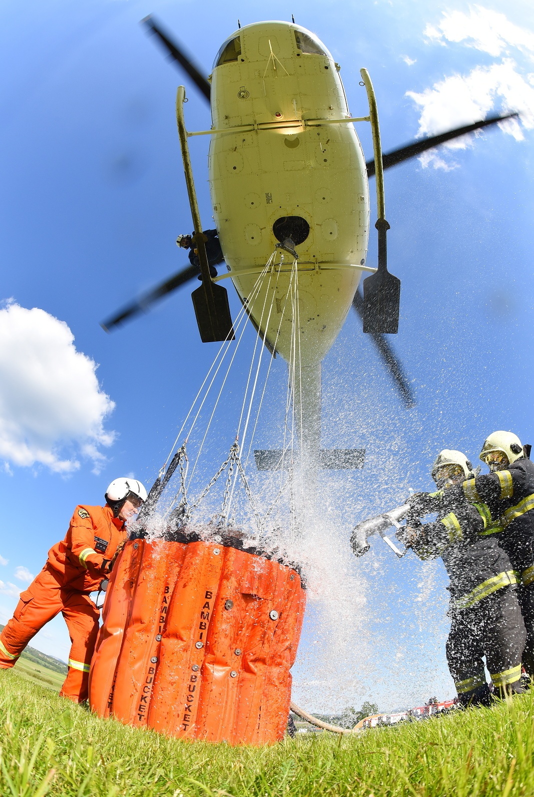 Samotnému plnění předcházel bezpečnostní pohovor ze strany vedoucích cvičení i posádky vrtulníku, při kterém proběhlo například nastavení komunikace a také seznámení s technickými prostředky, které byly přivezeny na palubě vrtulníku. K hlavním činnostem jednotlivých družstev patřilo ovládání plnících proudnic a zajištění kontinuální dodávky vody pro plnění závěsného vaku.