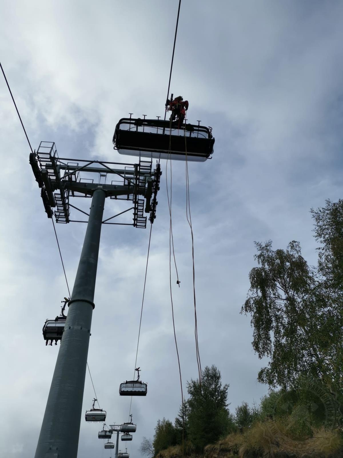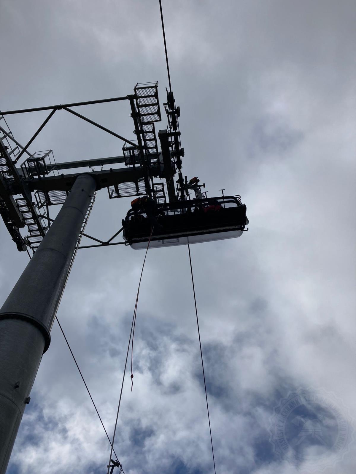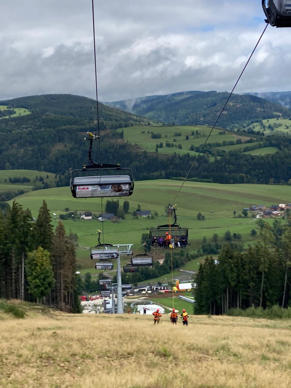 „Provozovatel lanovky rozmístil figuranty po 3 až 6 na sedačku na obou směrech. Lezecké týmy si rozdělily úseky mezi sloupy a na vyhlášení evakuace se začalo se záchranou. Jeden z lezců vyšplhal po žebříku na sloup lanové dráhy a pomocí kladky na ocelová lana se s jištěním spustil k nejbližší sedačce. Tady s pomocí lezce pod sebou spustil na laně v evakuačním trojúhelníku figuranta na zem,“ popisuje postup záchrany nprap. Josef Urválek, vedoucí krajské lezecké skupiny HZS Pardubického kraje.