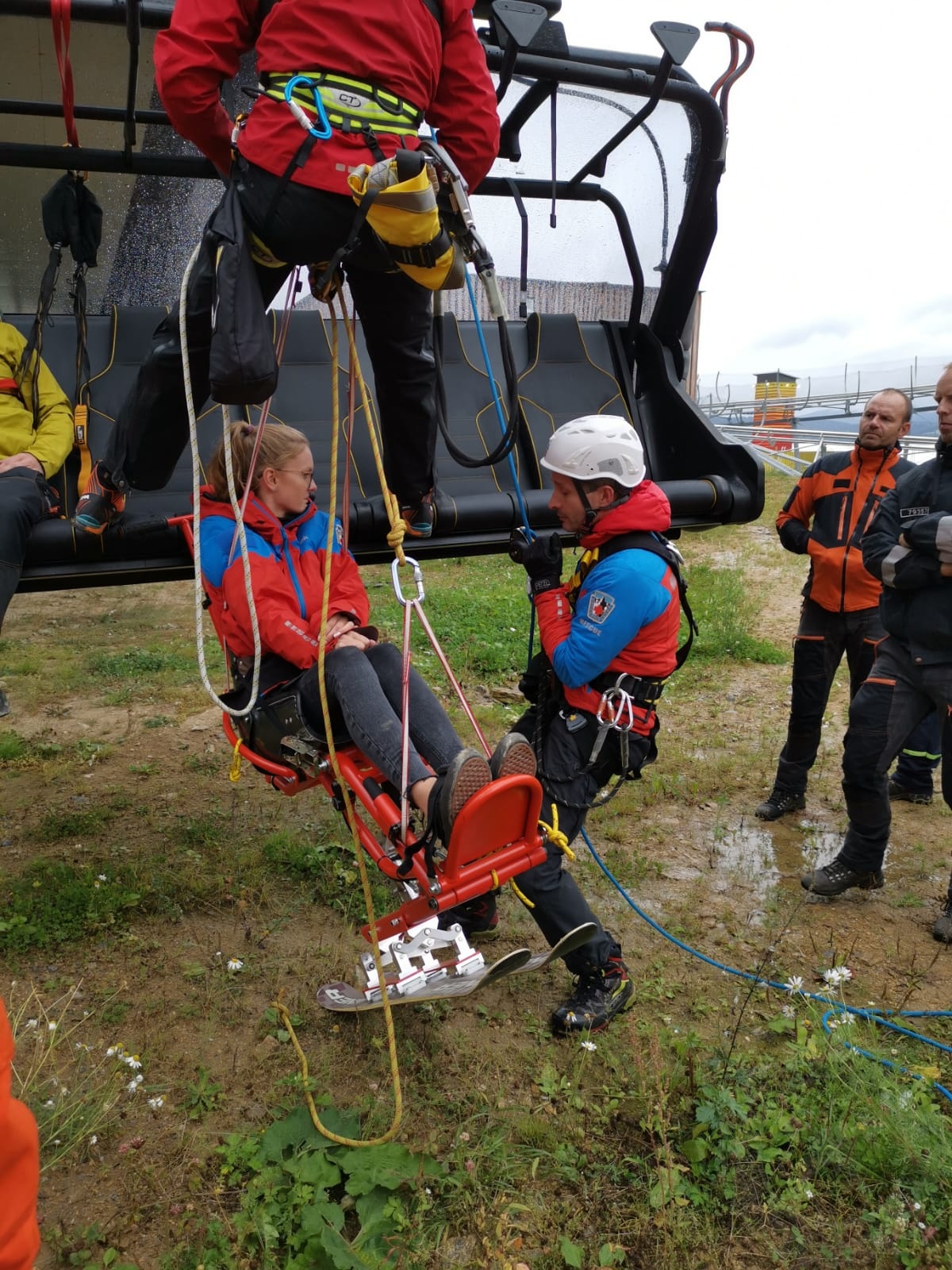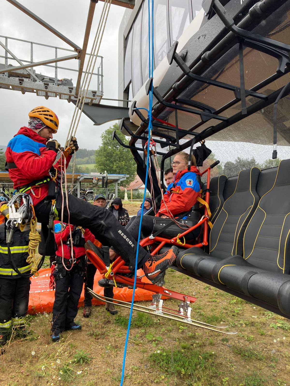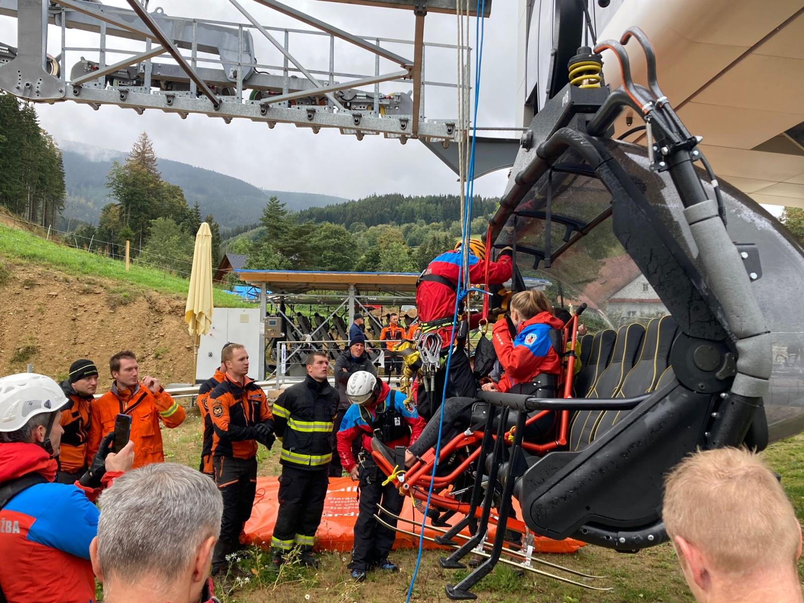 Horská služba zajistila na výcvik i monoski pro postiženou osobu a předvedla techniku na její evakuaci. Evakuace trvala asi jednu hodinu a na zem bylo bezpečně dopraveno všech 55 figurantů.