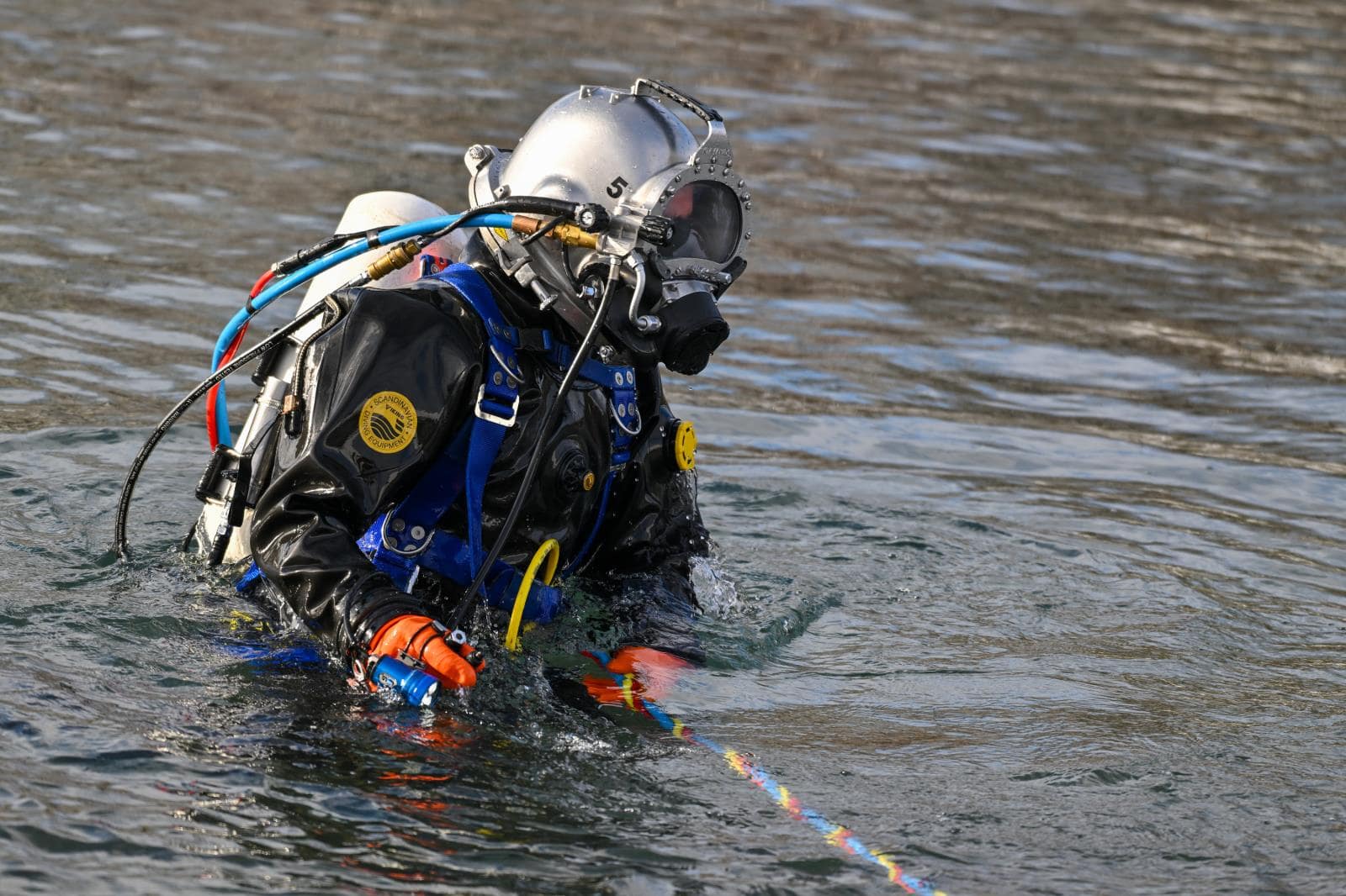Cvičení probíhalo ve třech samostatných sestupech. Každou pětici tvořil potápěč s přilbou, jistící potápěč vstupující pod vodu souběžně, návodčí na břehu odpovědný za bezpečné spuštění na hadici, operátor sledující parametry ponoru pomocí kufru KMACS 5 a supervizor řídící celý tým. Právě systém KMACS 5 zajišťoval nejen přívod a regulaci vzduchu, ale také komunikaci s potápěčem v hloubce – klíčovou pro řešení nečekaných komplikací.