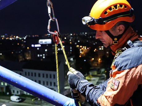 Náročný výstup na jeřáb: Hasiči lezci během výcviku zachránili muže z kabiny i z ramene konstrukce