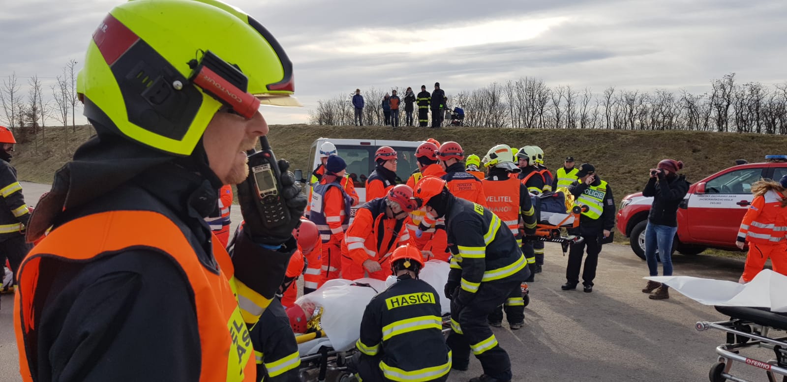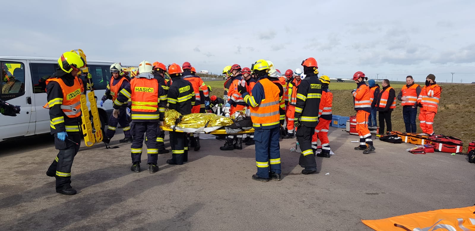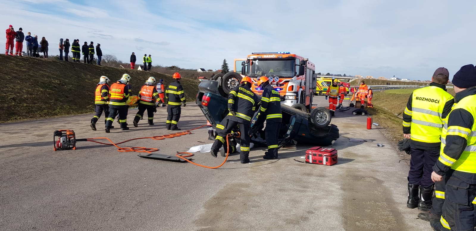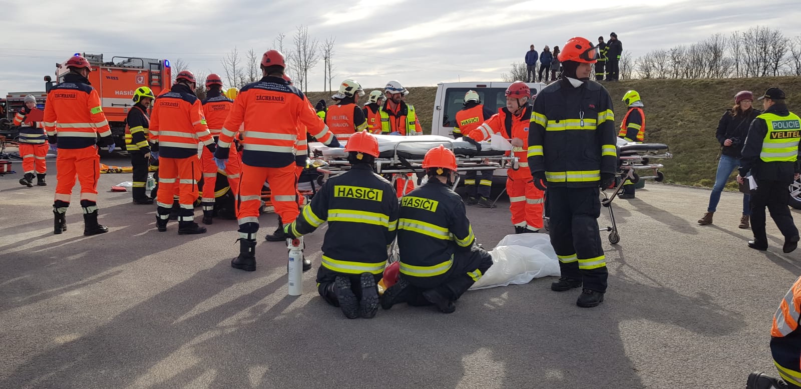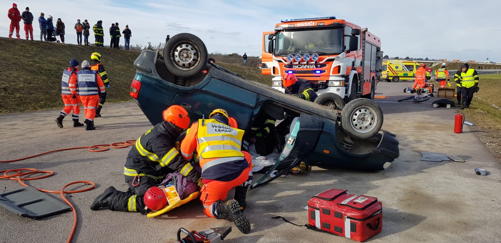 Středa, 12. února 2020 - Na silničním obchvatu Znojma se uskutečnilo cvičení složek IZS. Simulovala se dopravní nehoda s větším počtem zraněných osob.