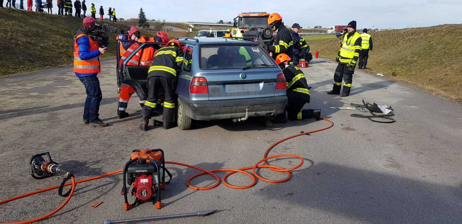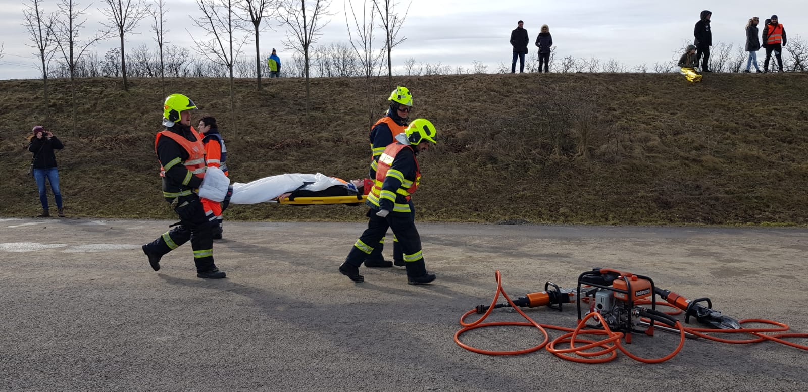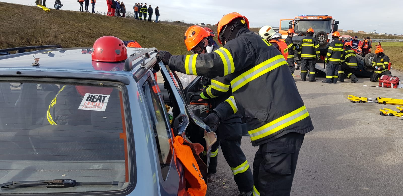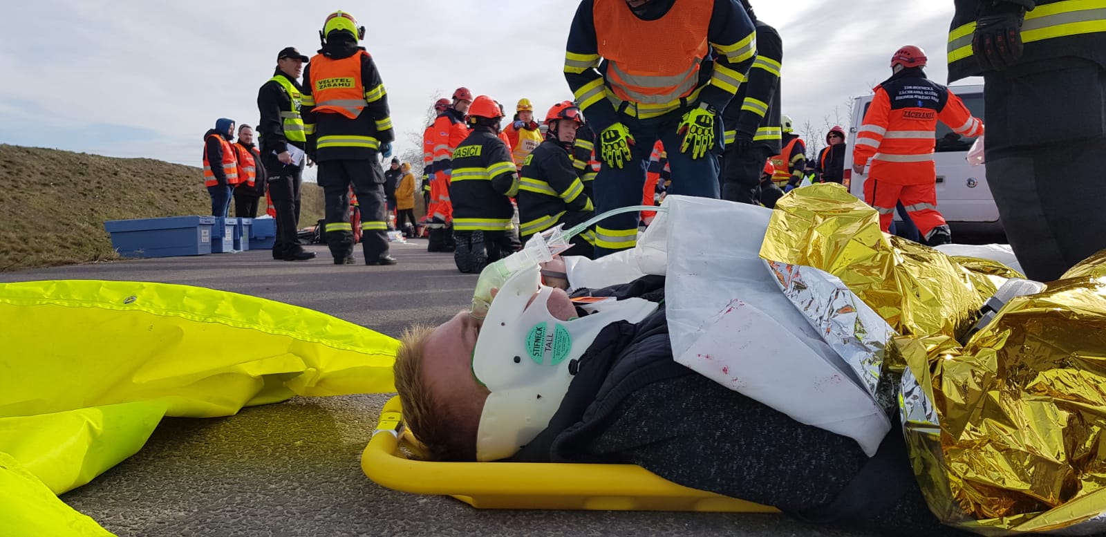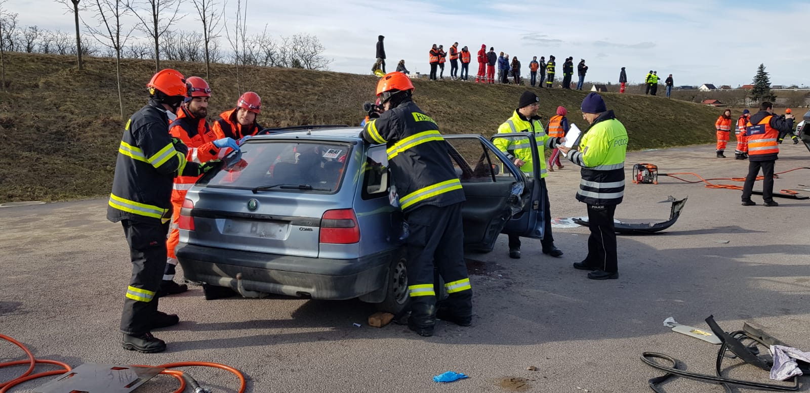 Středa, 12. února 2020 - Na silničním obchvatu Znojma se uskutečnilo cvičení složek IZS. Simulovala se dopravní nehoda s větším počtem zraněných osob.