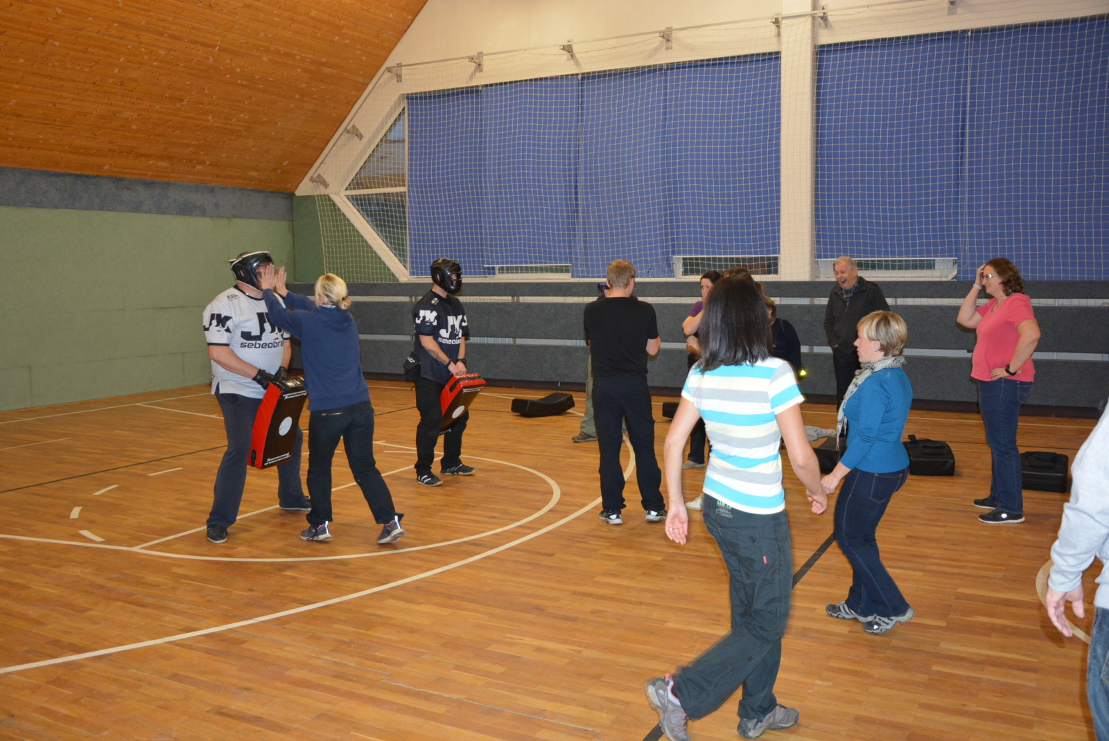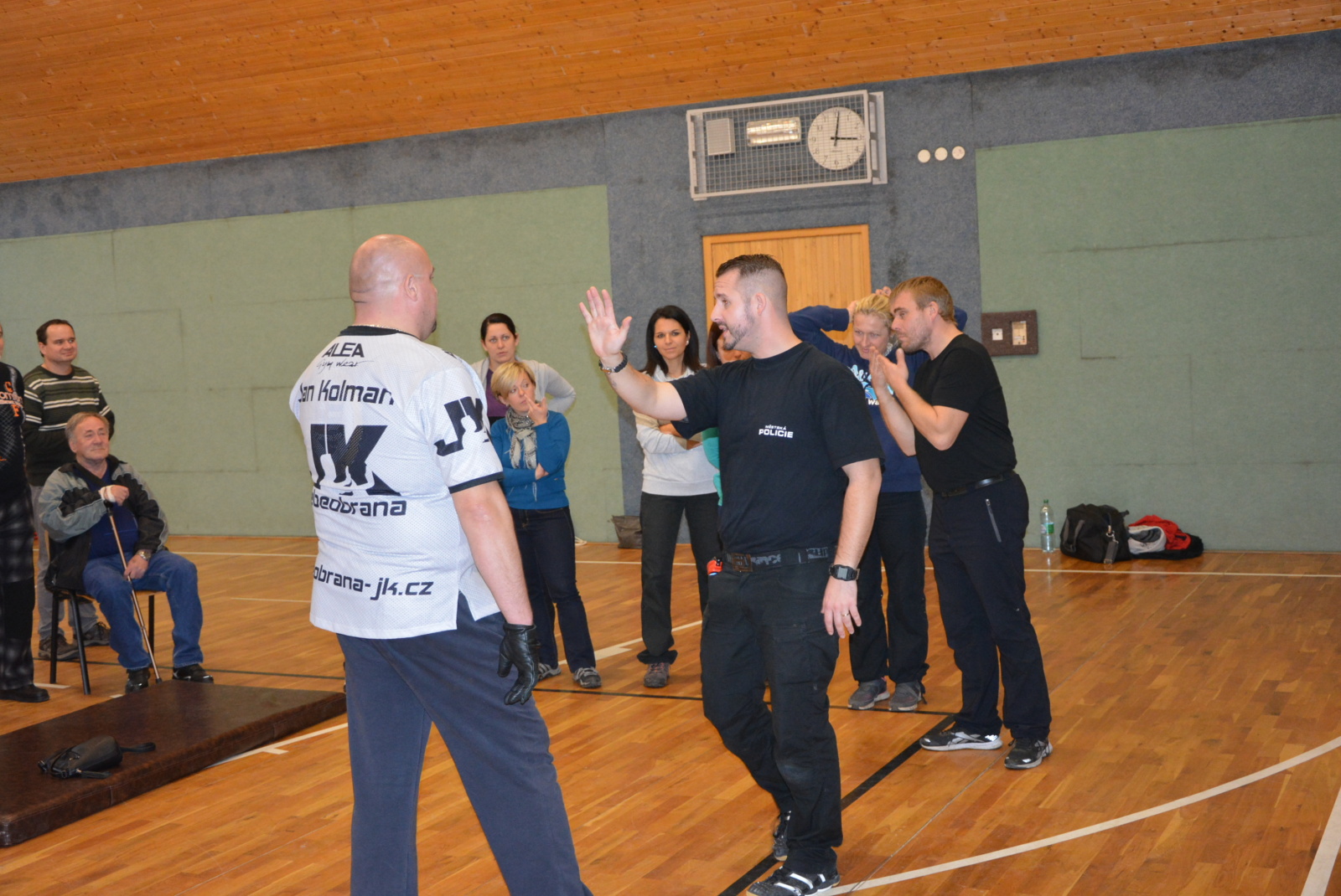 Celkem patnáct neslyšících osob spolu s překladatelem do znakového jazyka bylo na úvod seznámeno se zásadami bezpečného chování na ulici i s riziky, která v dnešní době reálně hrozí. Součástí bylo i obeznámení s použitím cvičného pepřového spreje, kdy se účastníci kurzu dozvěděli, jak a kde tento sprej nosit a jak ho správně použít, aby obrana s touto pomůckou byla co nejefektivnější. Naučené teoretické znalosti si poté všichni účastníci vyzkoušeli i prakticky.