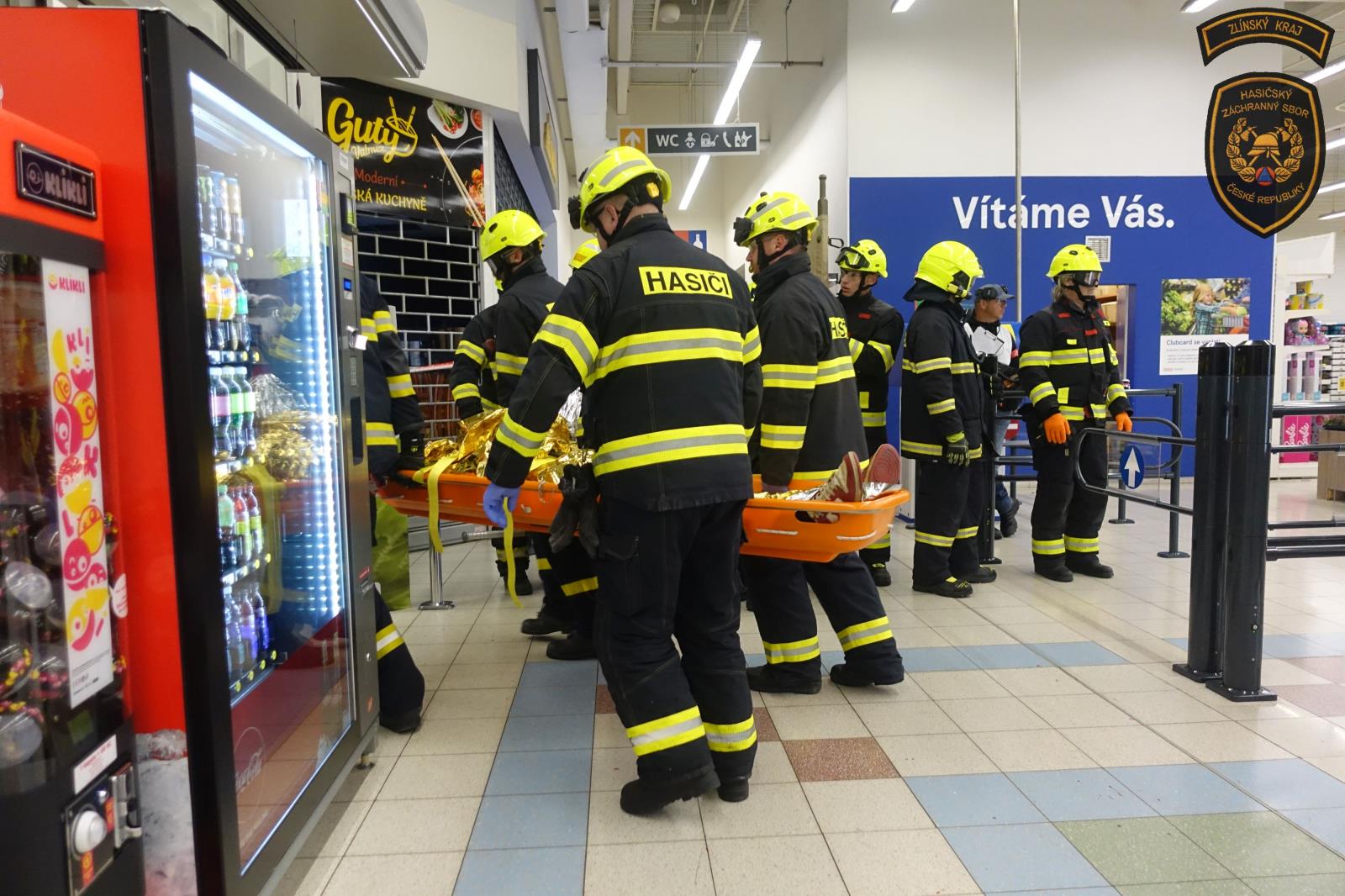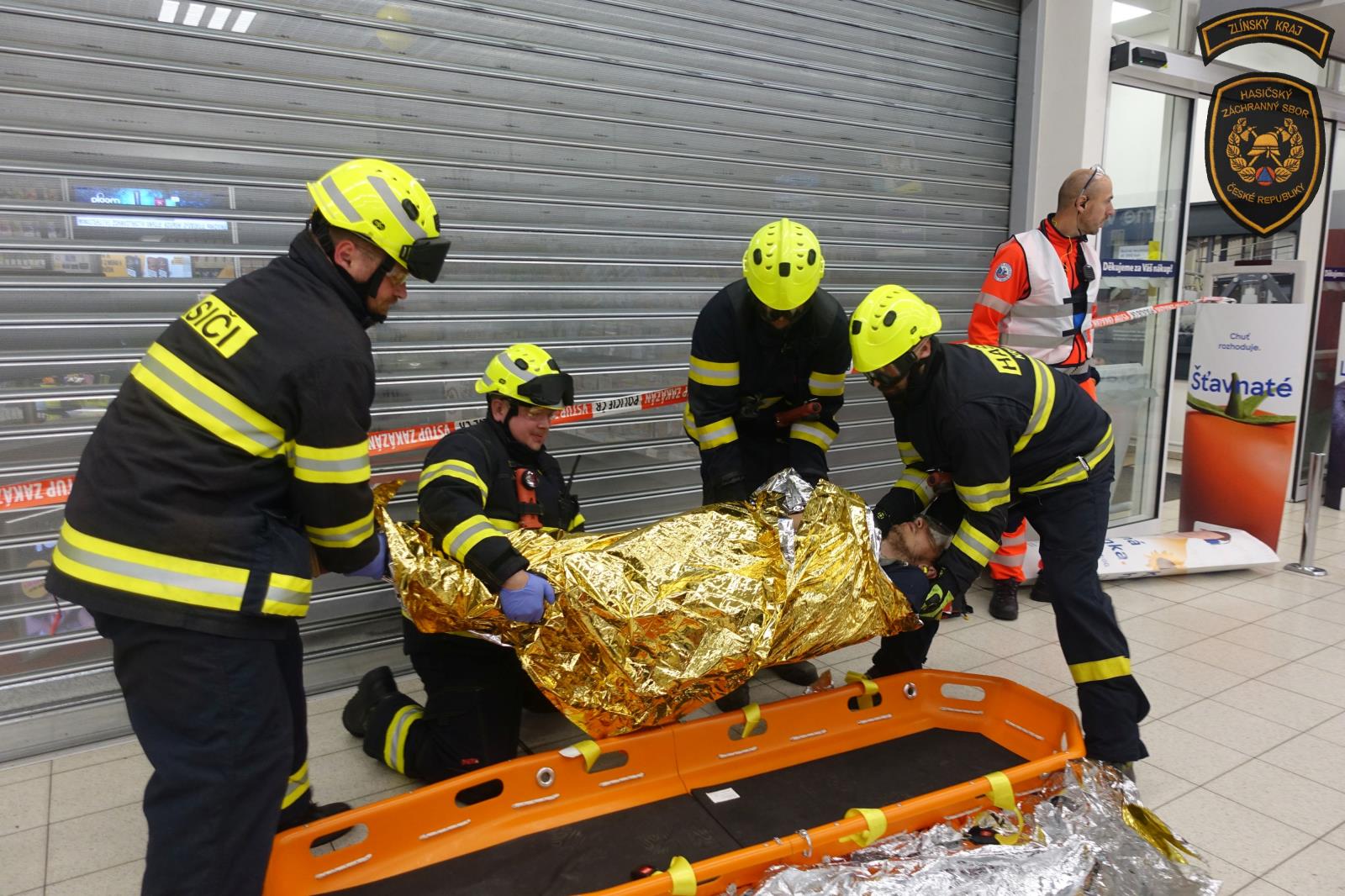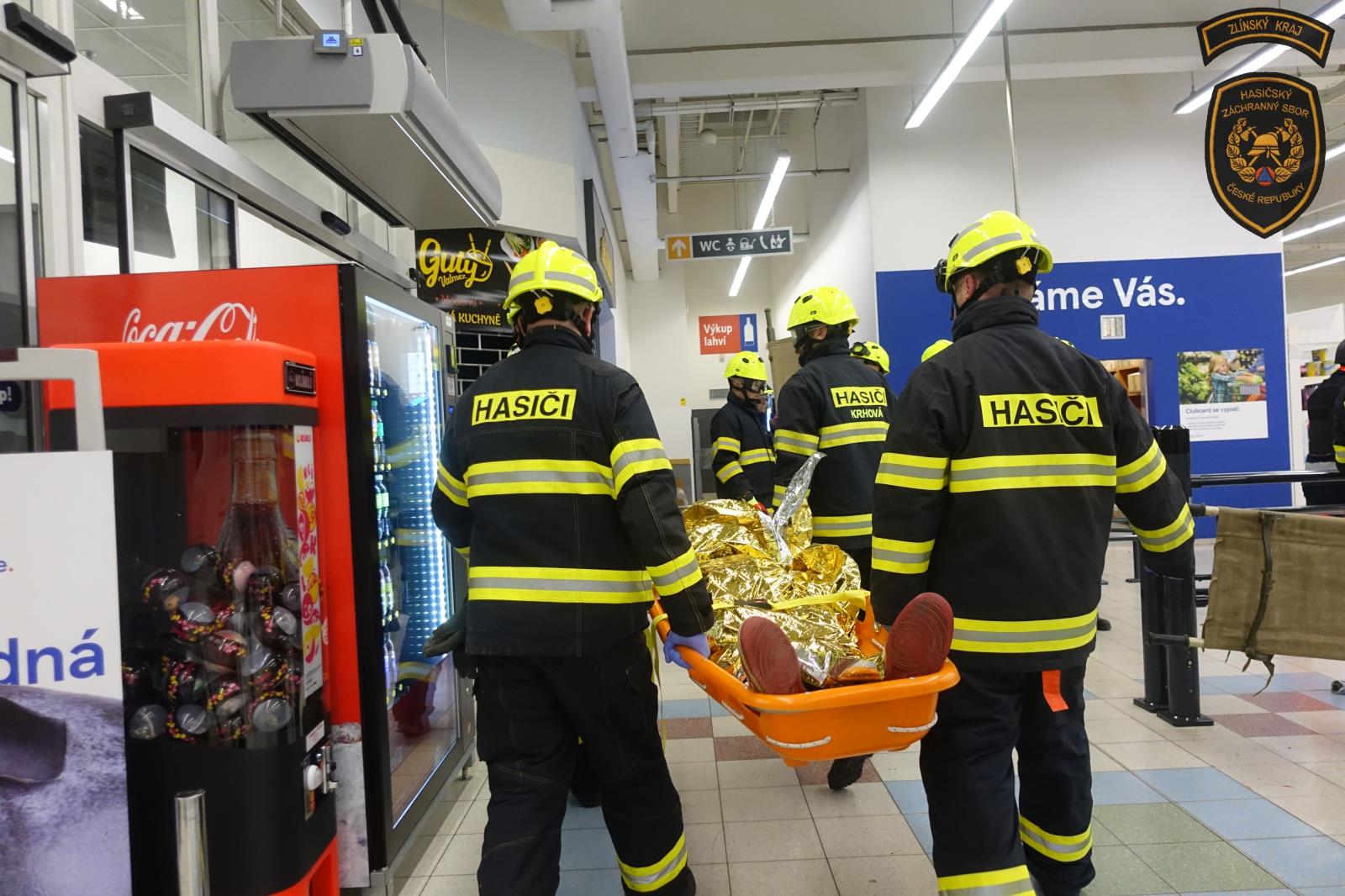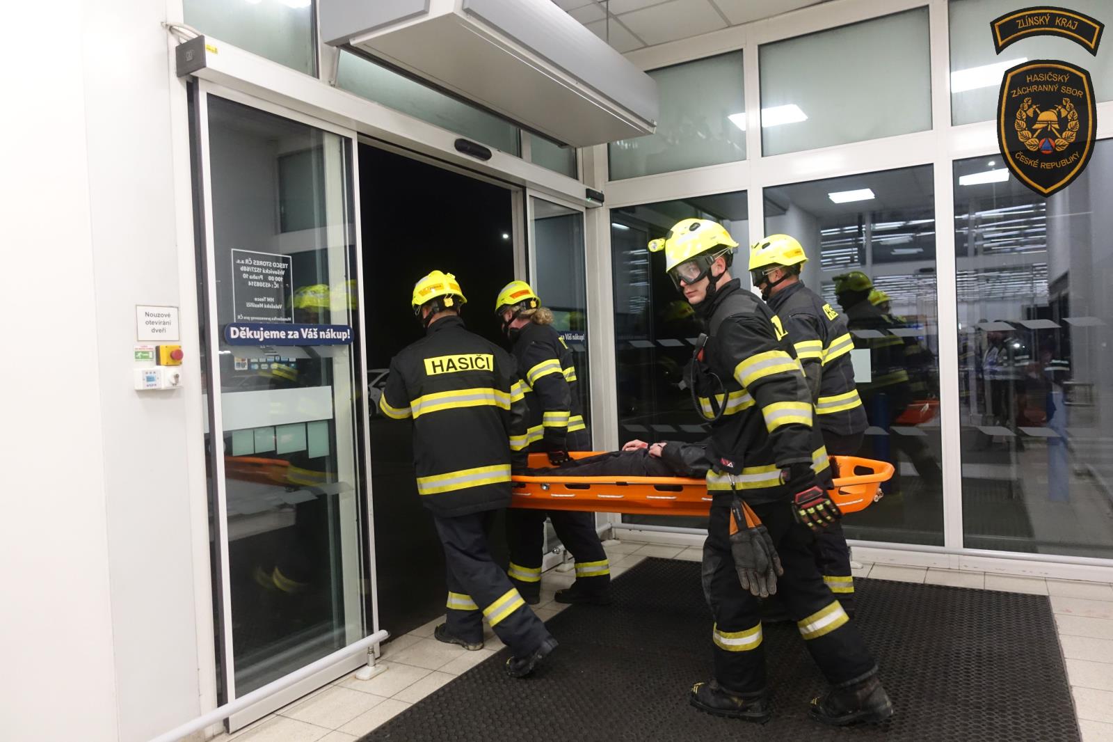 Modelová situace počítala s ozbrojeným útočníkem, který nejprve ohrozil lidi na parkovišti a poté vstoupil do prodejny. Policie okamžitě zajišťovala perimetr a vyhledávala pachatele. Po jeho zneškodnění nastoupili hasiči a zdravotníci – evakuovali zraněné, třídili je podle závažnosti a poskytovali první pomoc.
