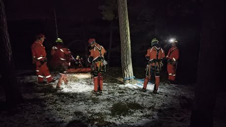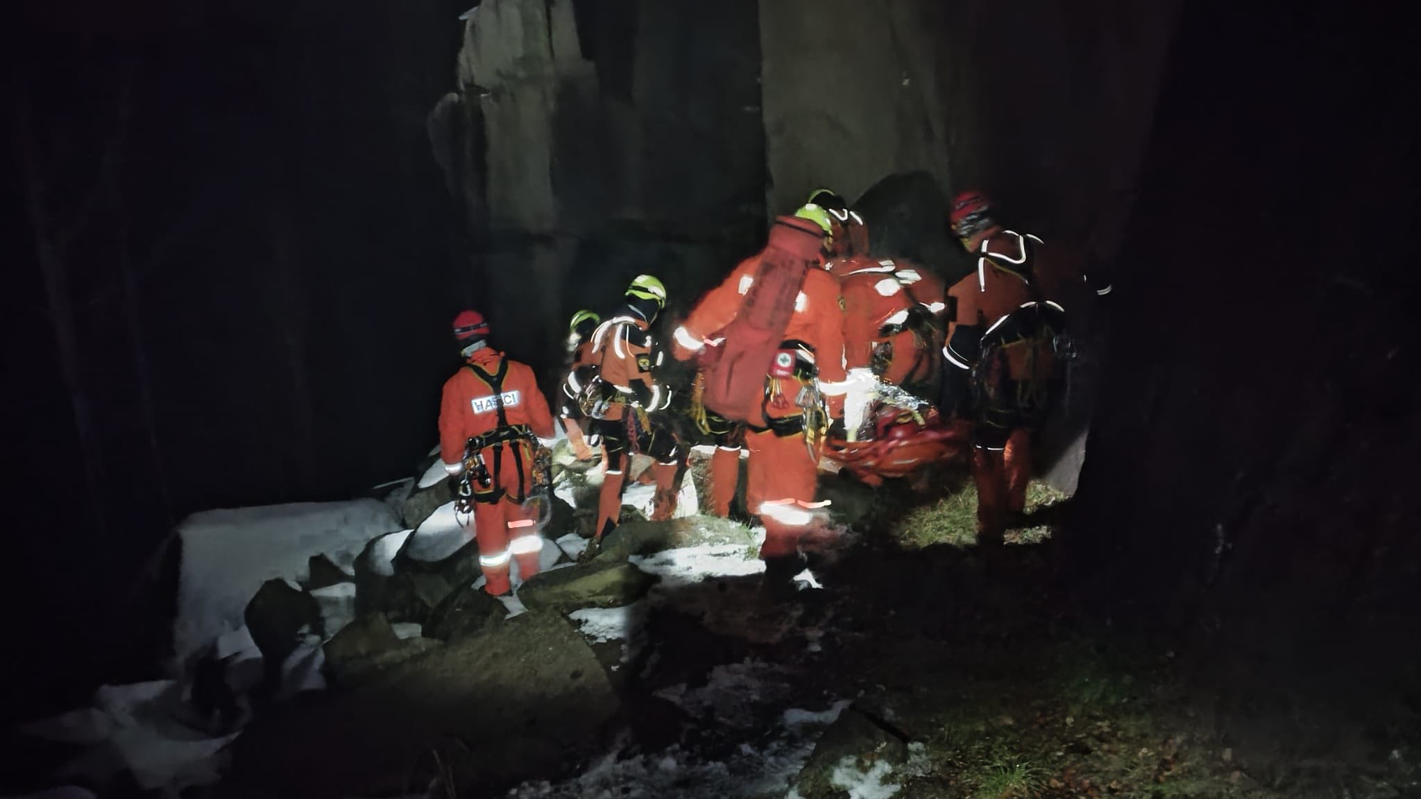 Noční výcvik záchranářů ukázal, jak náročný je transport zraněných ve skalním terénu