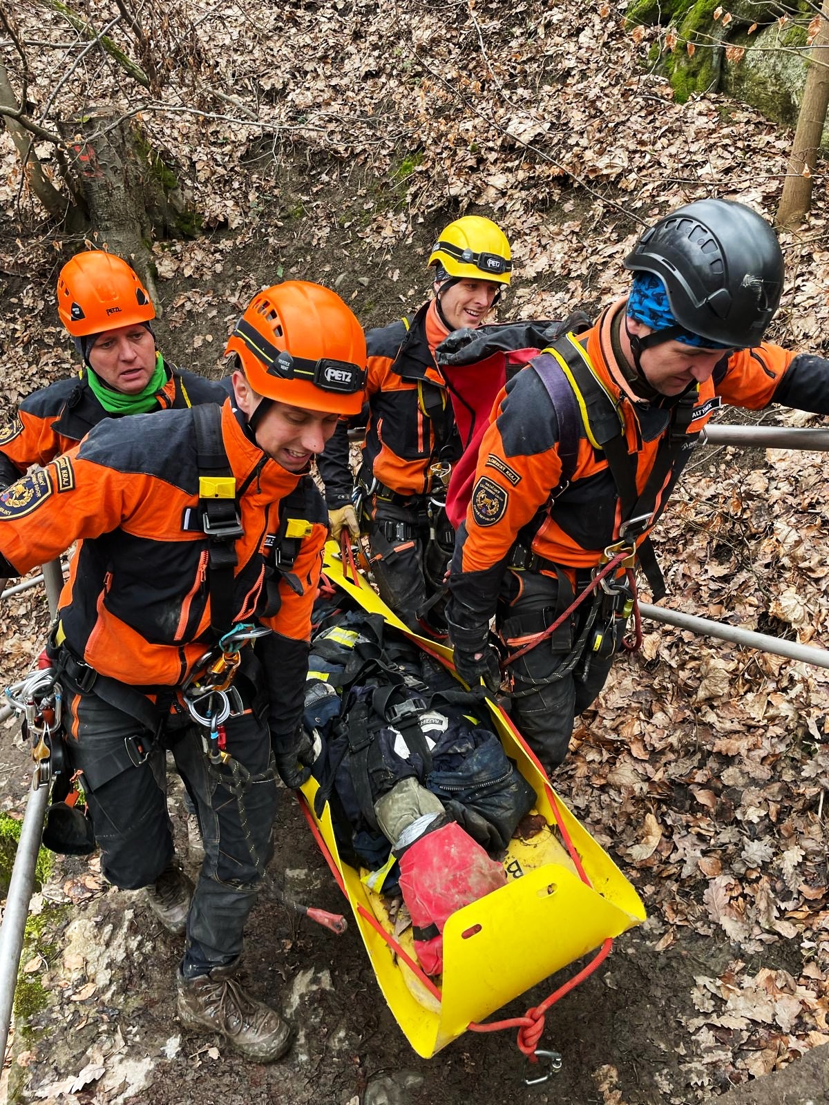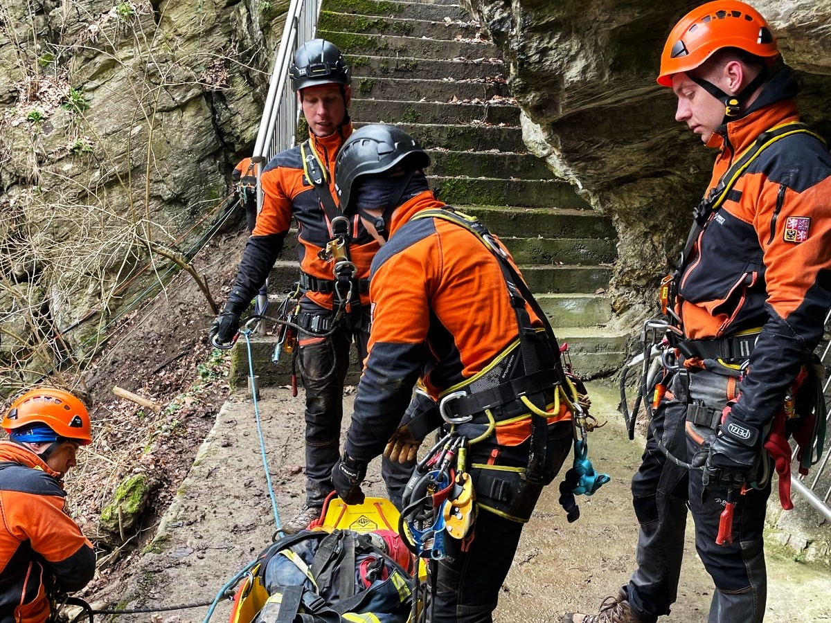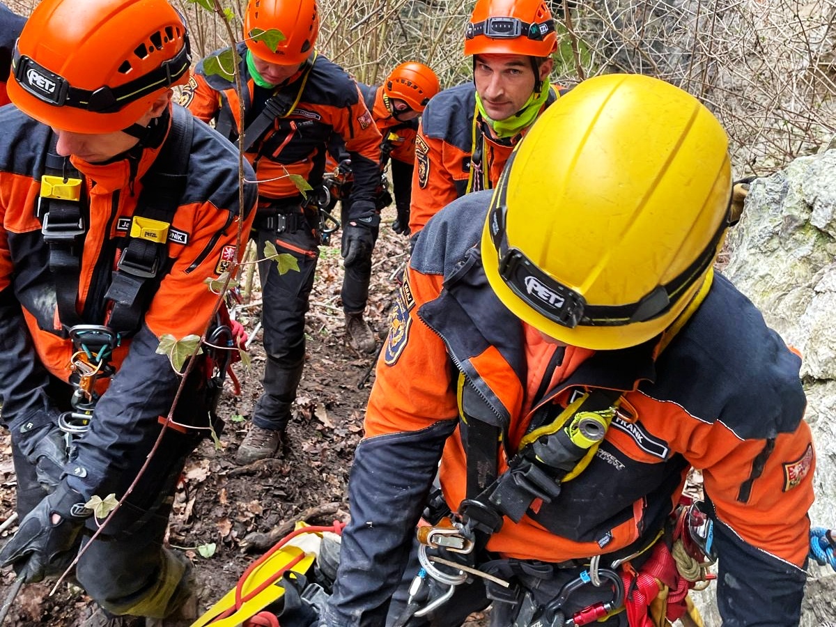 Zraněného turistu při průzkumu hranické propasti zachraňovali přerovští a prostějovští hasiči u Hranic. Naštěstí...