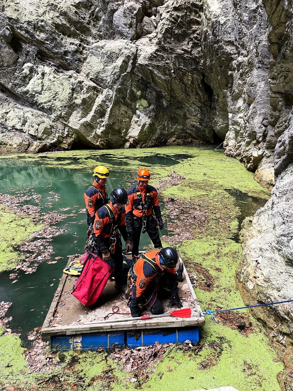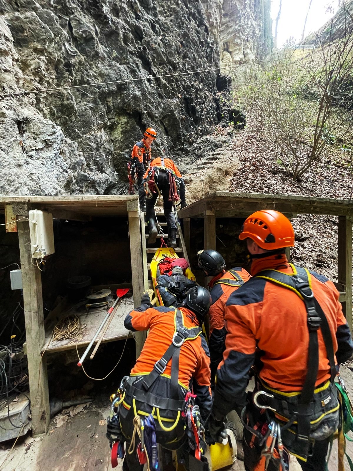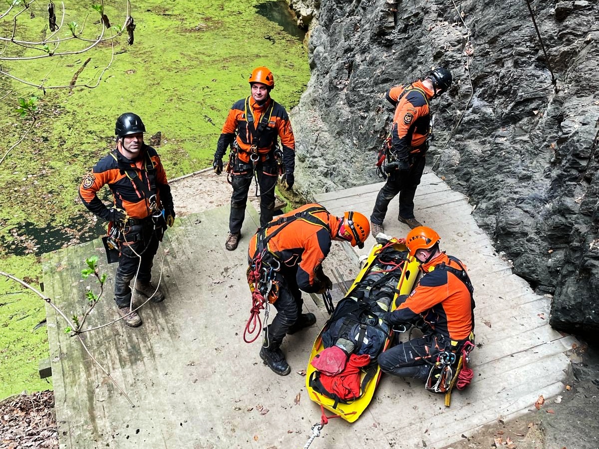 Zraněného turistu při průzkumu hranické propasti zachraňovali přerovští a prostějovští hasiči u Hranic. Naštěstí...