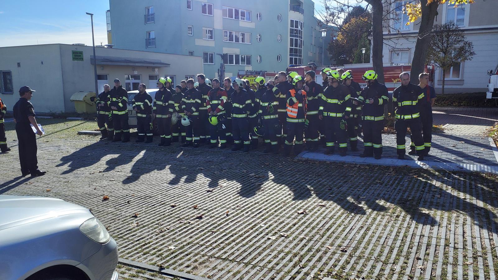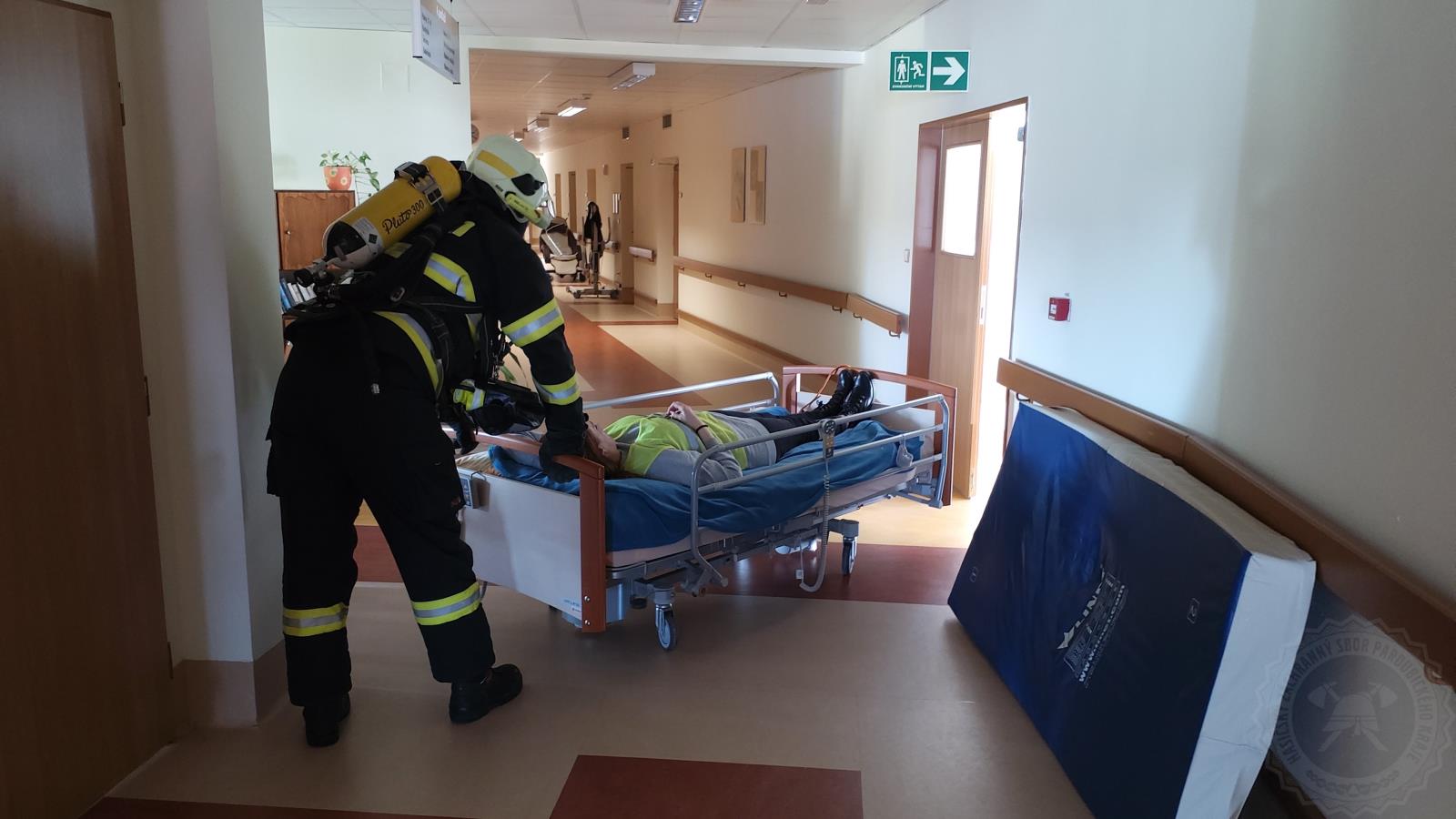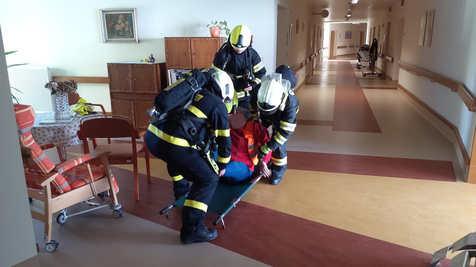 Do doby příjezdu první jednotky požární ochrany byla započata evakuace osob ze zasaženého podlaží personálem domova dle požárních poplachových směrnic domova. Následně jednotky provedly simulovanou evakuaci imobilních osob chráněnou únikovou cestou a evakuačním výtahem do přízemí domova. Požární zásah byl veden vnitřní zásahovou cestou po schodišti. Dále byla provedena evakuace osob (figurantů) ze střechy domova pomocí výškové techniky.