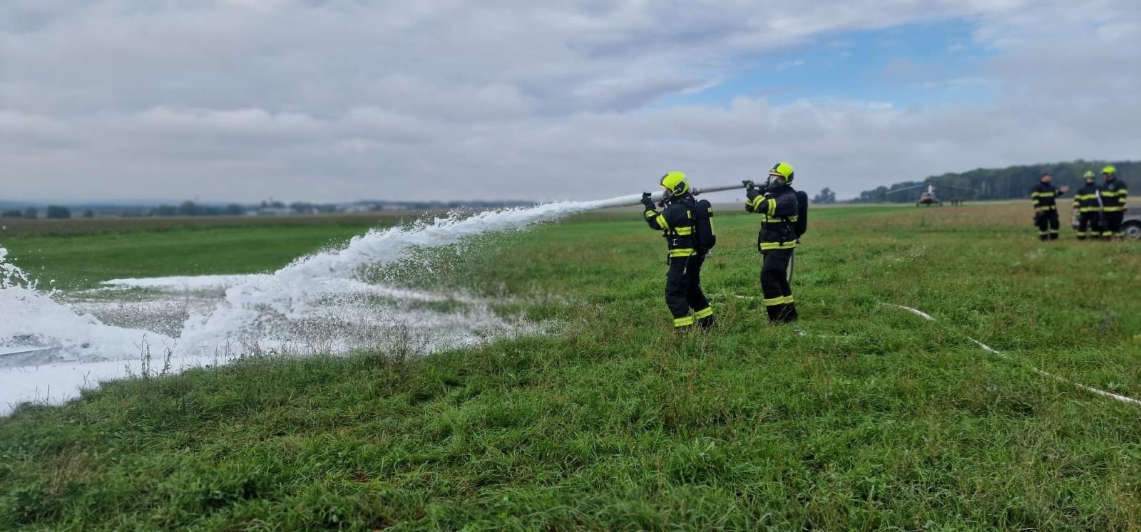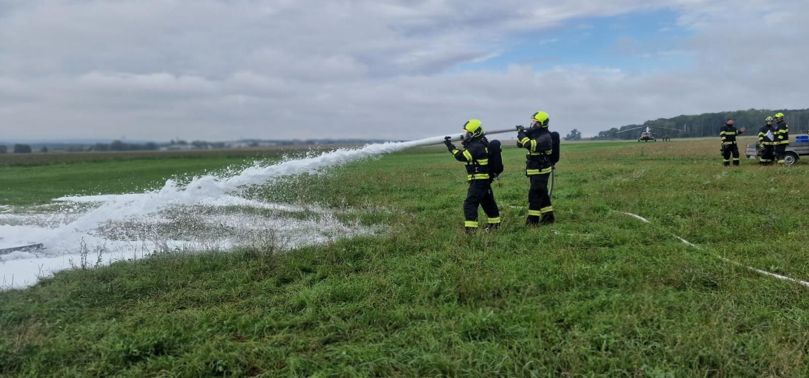 Hlavním cílem cvičení bylo získání informací a seznámení se s postupy při vzniku mimořádné události u letecké nehody a výcvik v hašení hořlavých kapalin pěnou,“ uvedl ke cvičení jeho velitel nprap. Milan Pavlíček ze stanice Přelouč.