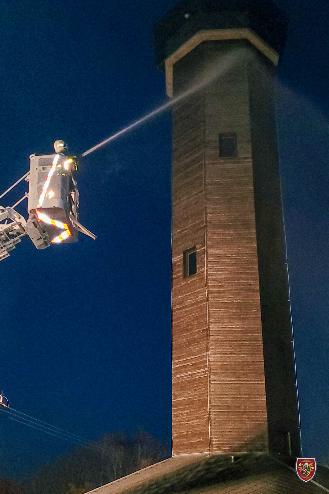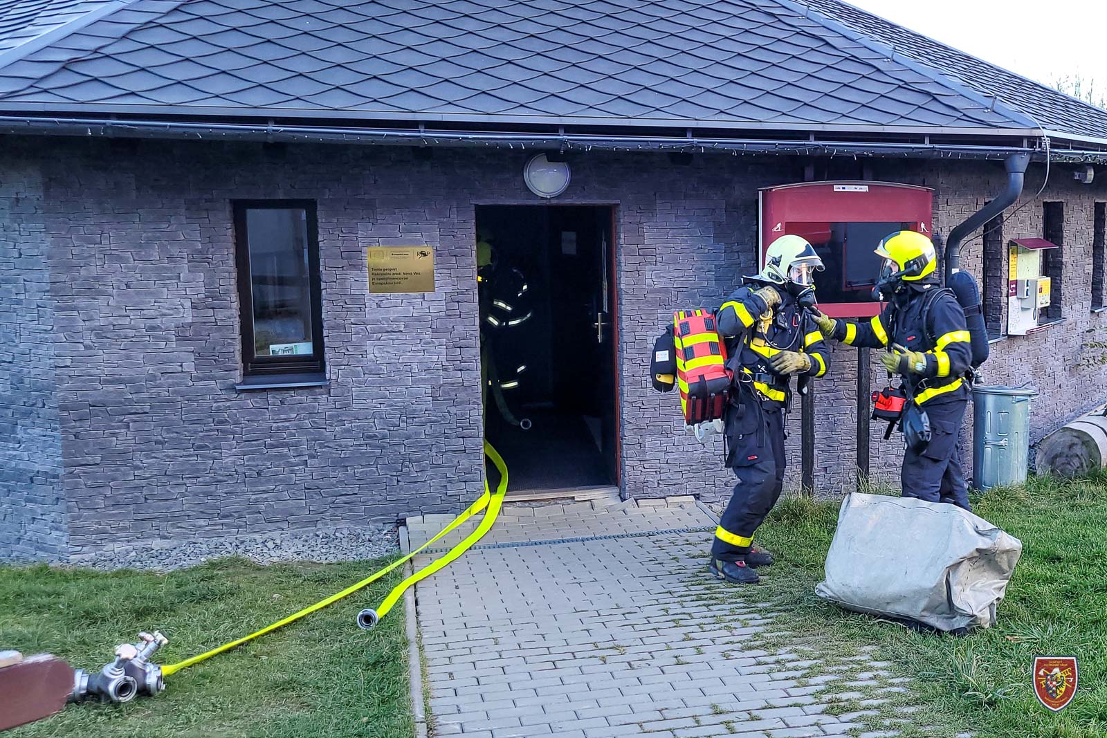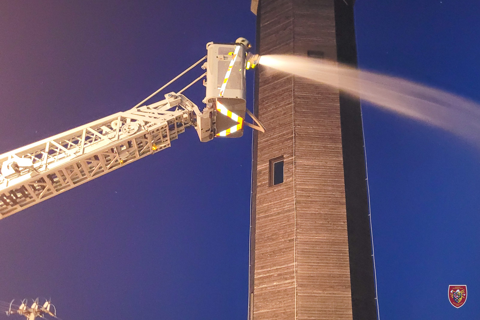 Hasiči po příjezdu na místo události provedli průzkum a po vnitřním schodišti rozhledny natáhli hadicové vedení nutné pro likvidaci požáru.
