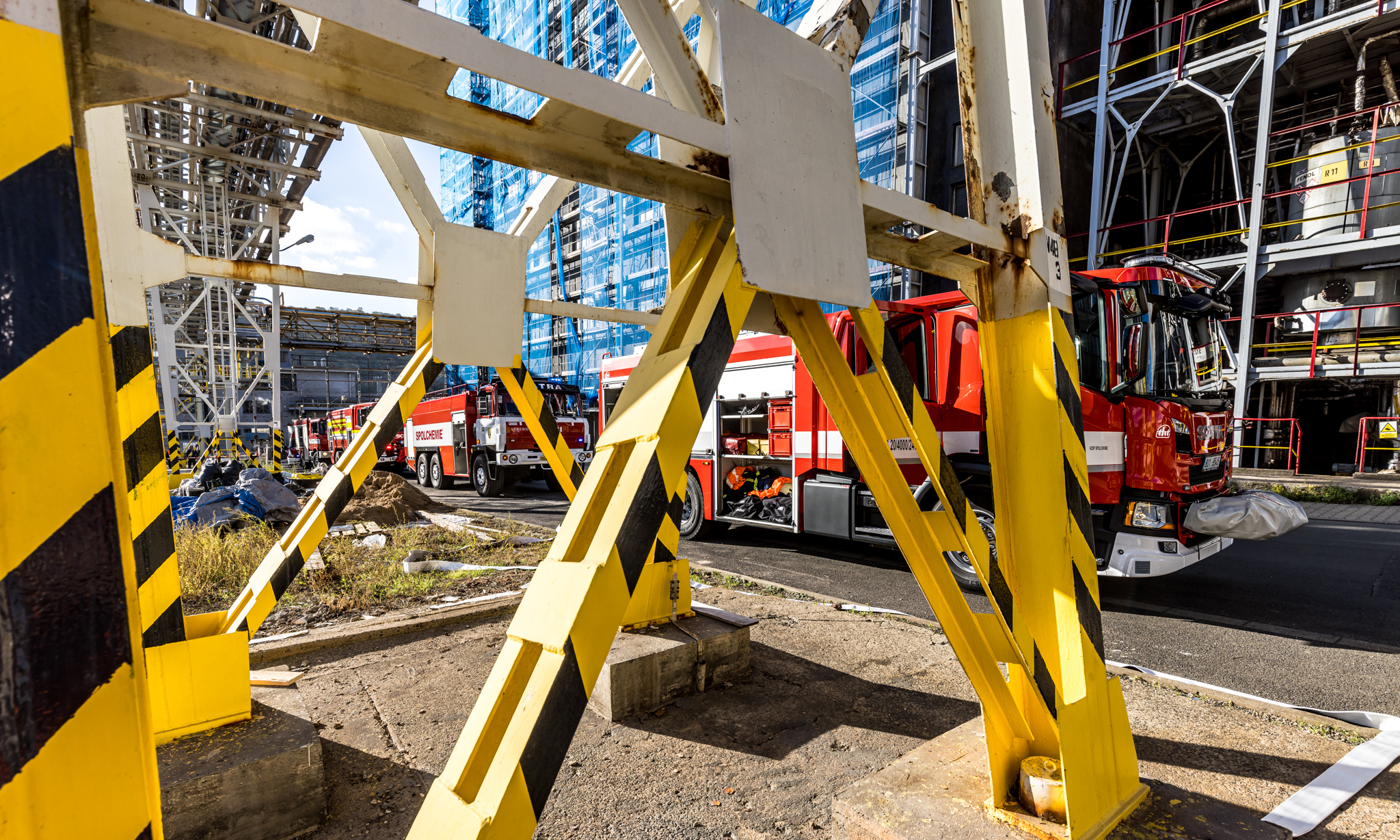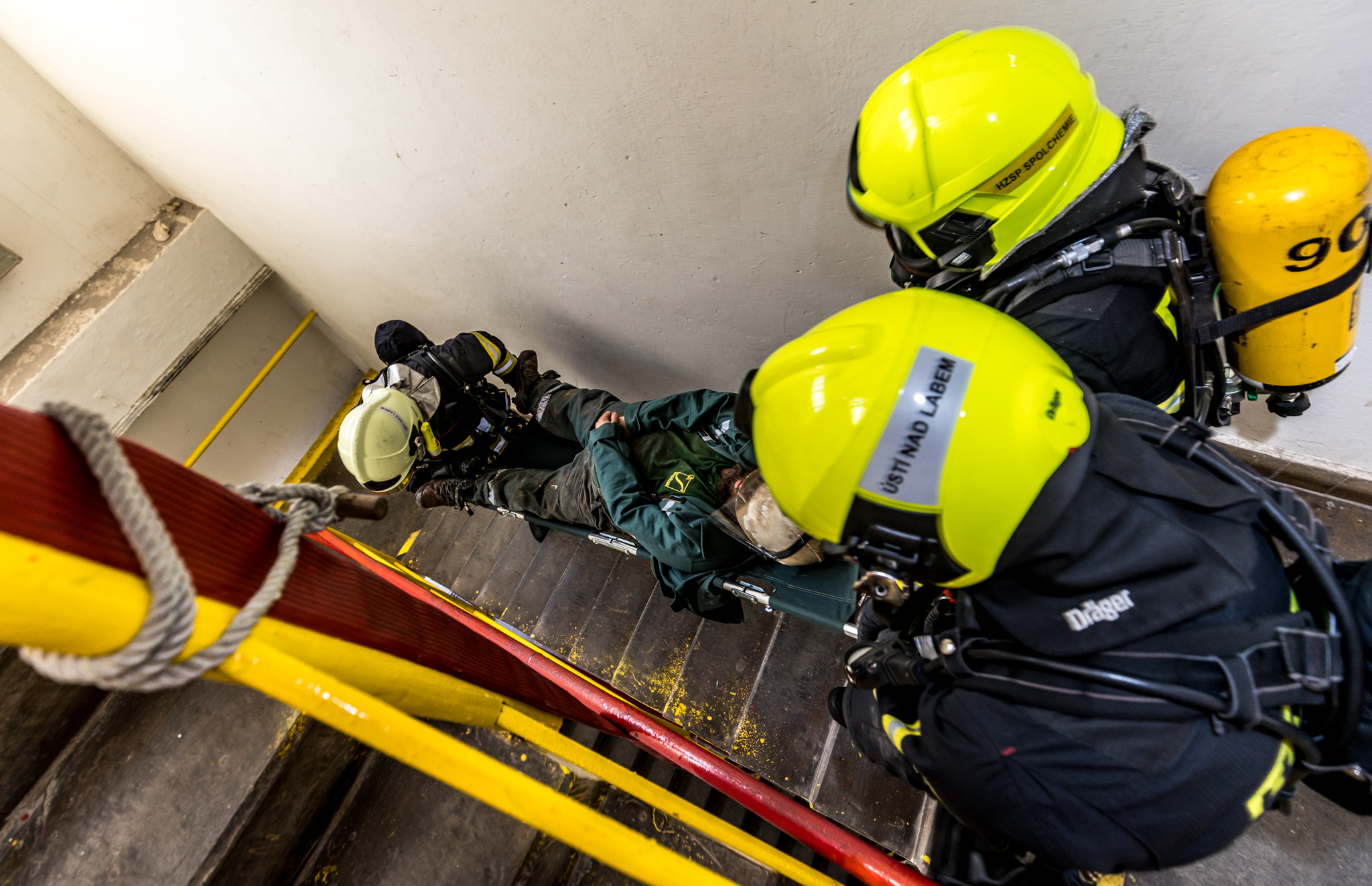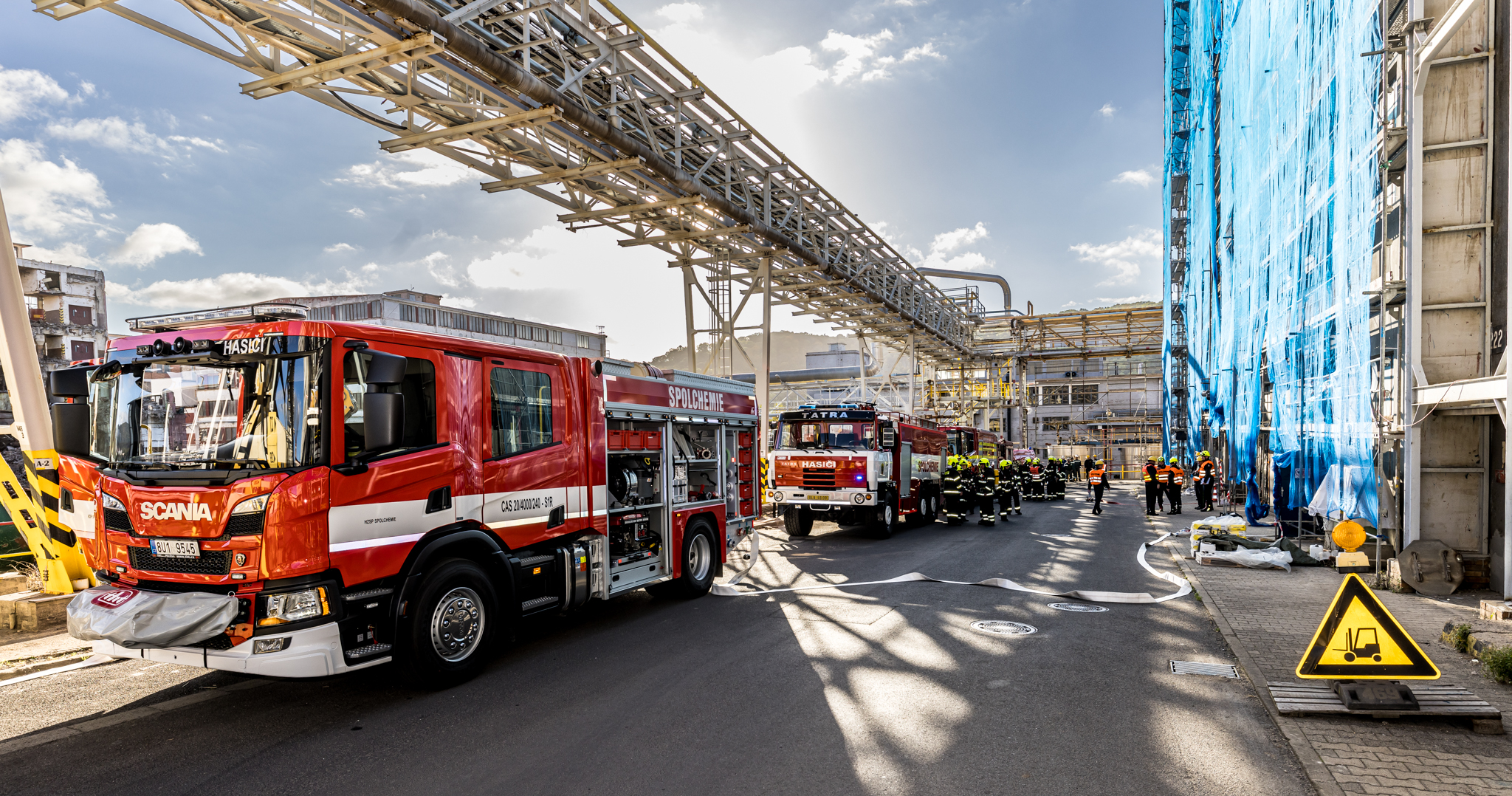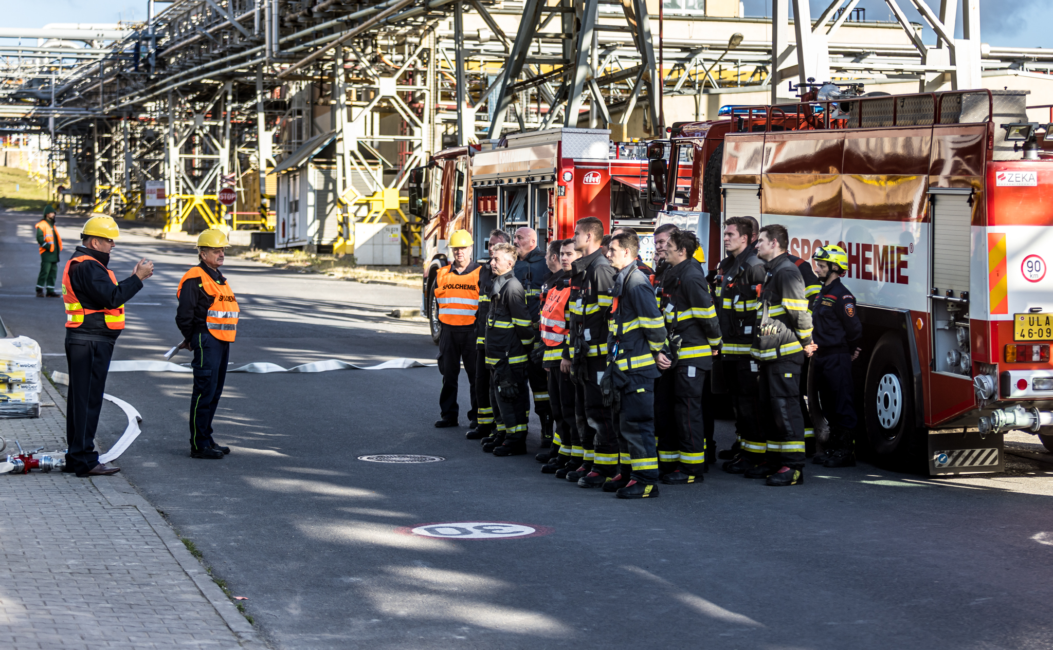 Úterního cvičení se zůčastnili vnitropodnikové hasičské jednotky a HSZ Ústí nad Labem