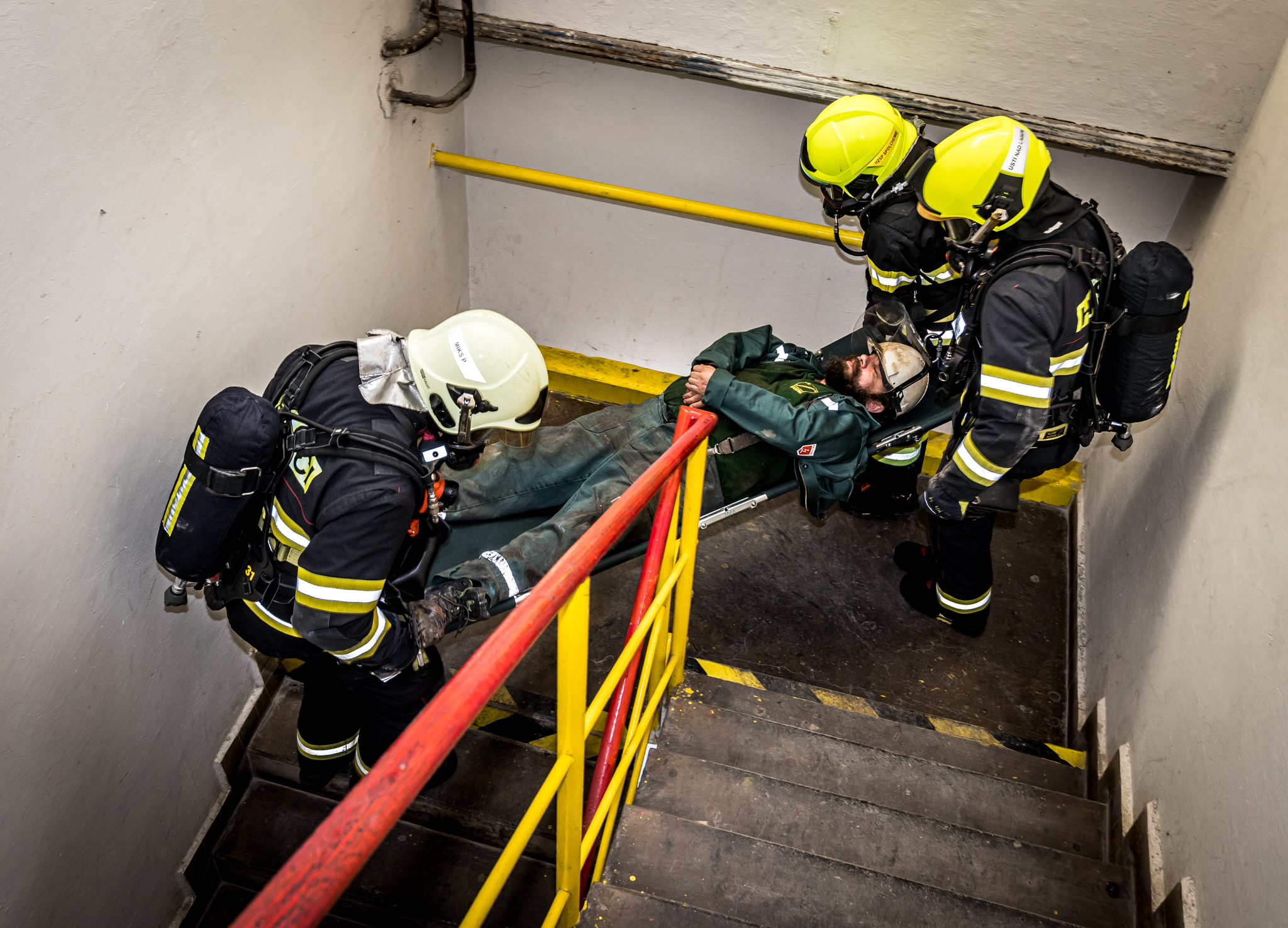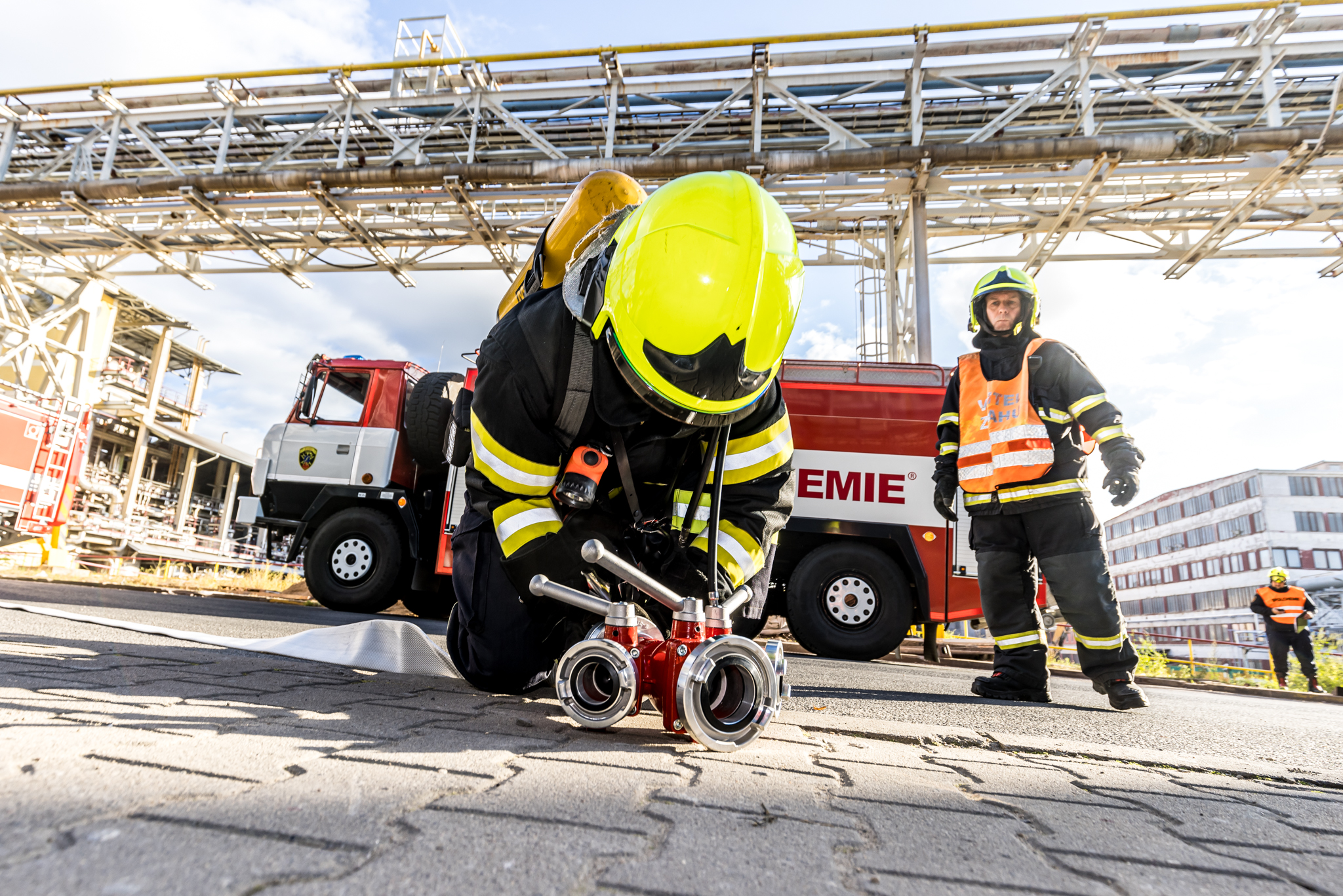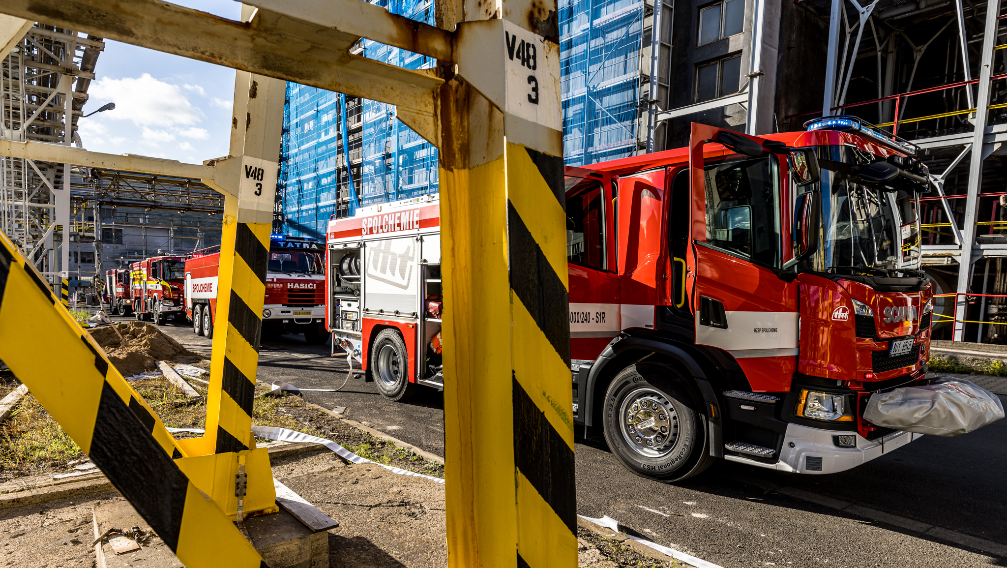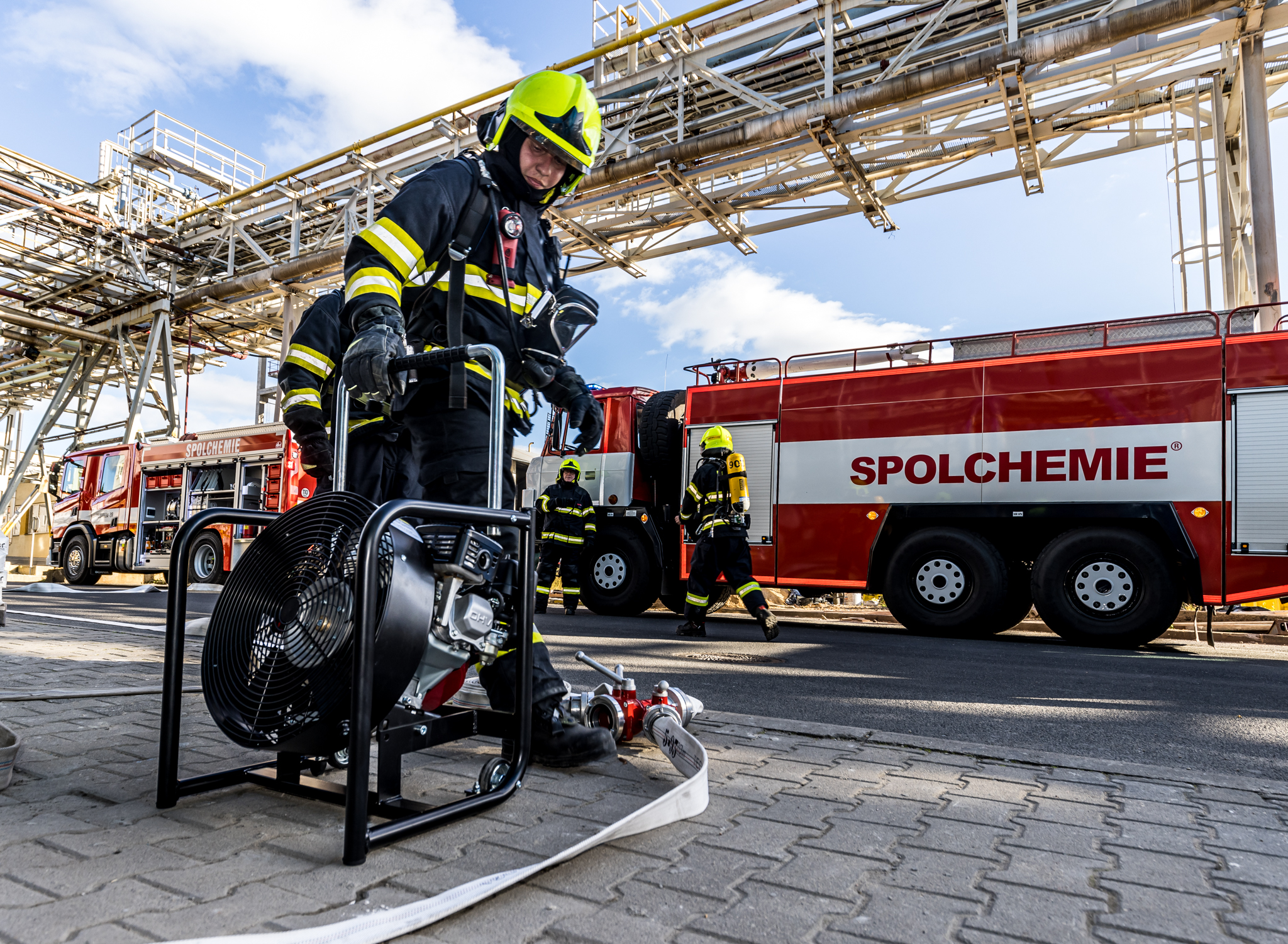 Úterního cvičení se zůčastnili vnitropodnikové hasičské jednotky a HSZ Ústí nad Labem