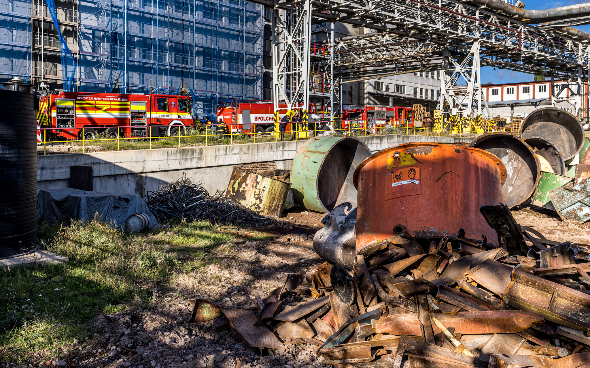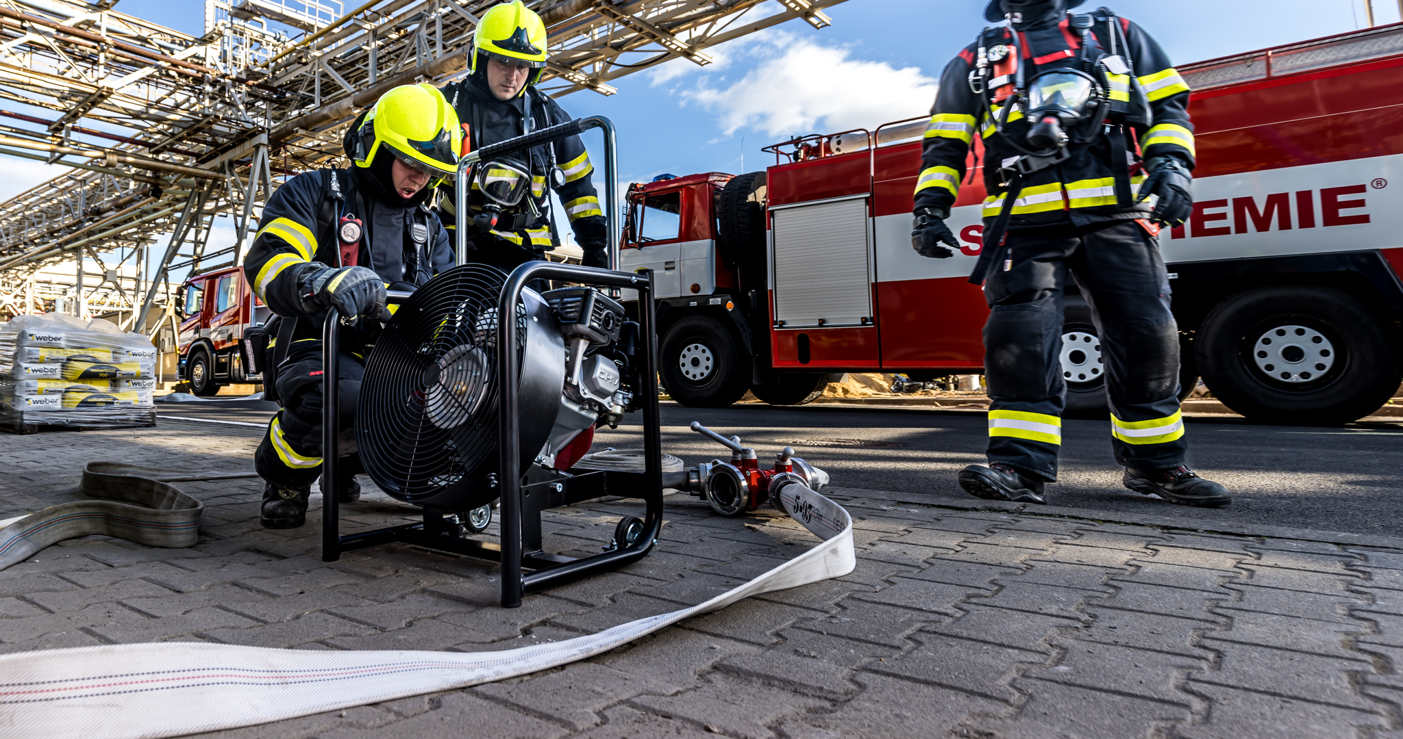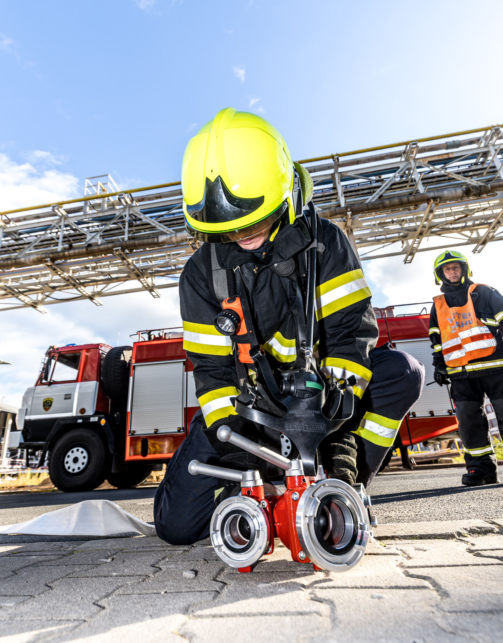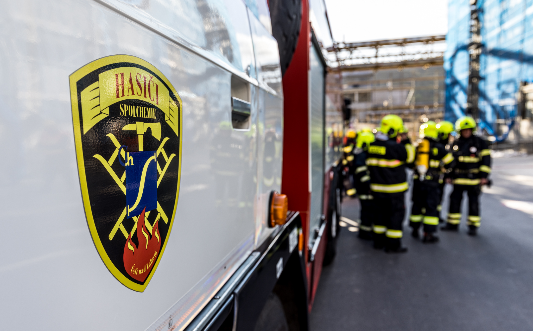 Úterního cvičení se zůčastnili vnitropodnikové hasičské jednotky a HSZ Ústí nad Labem